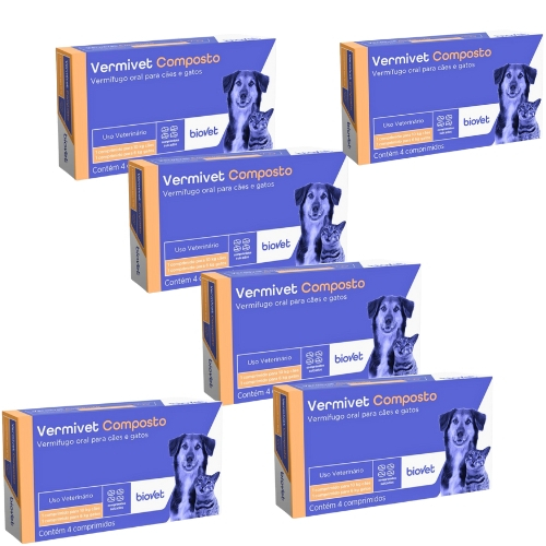 Kit 6 Vermivet Composto Biovet – Combate Vermes Intestinais Seguro e com Ação Prolongada