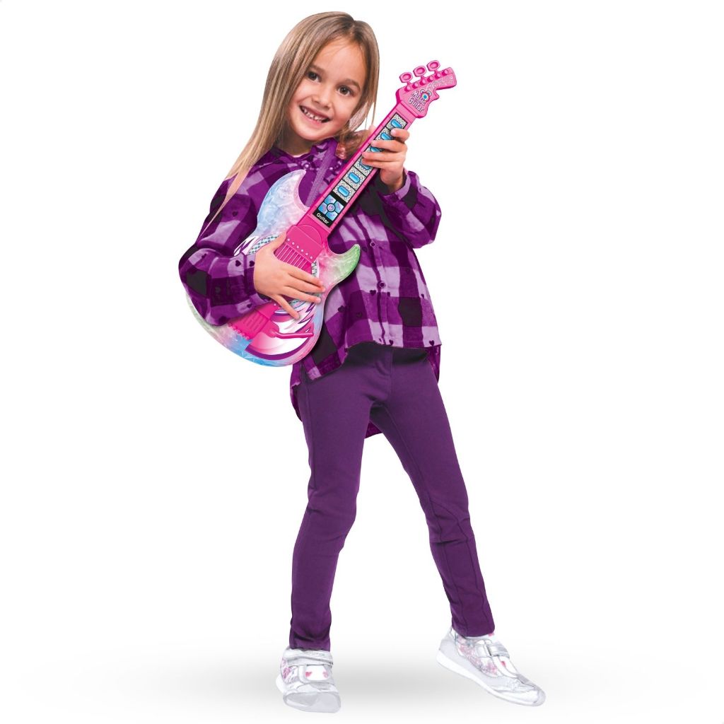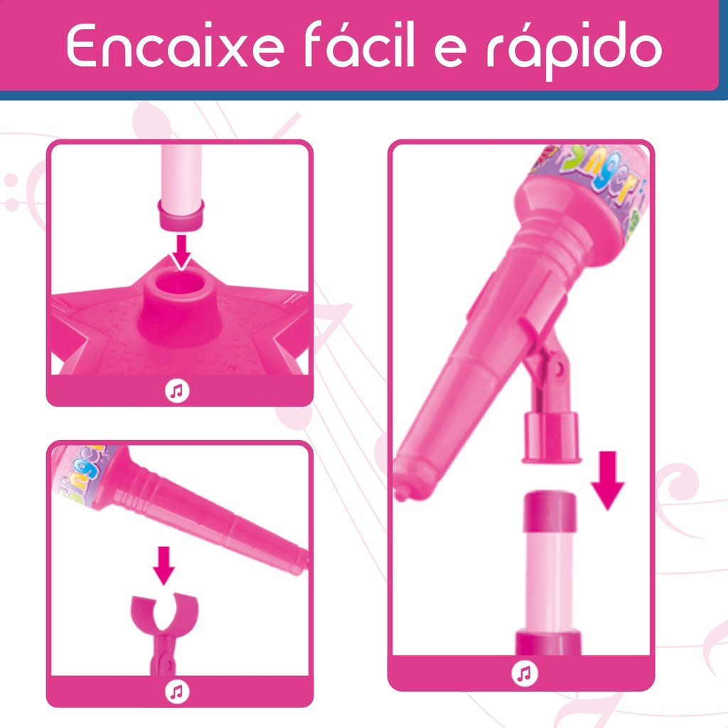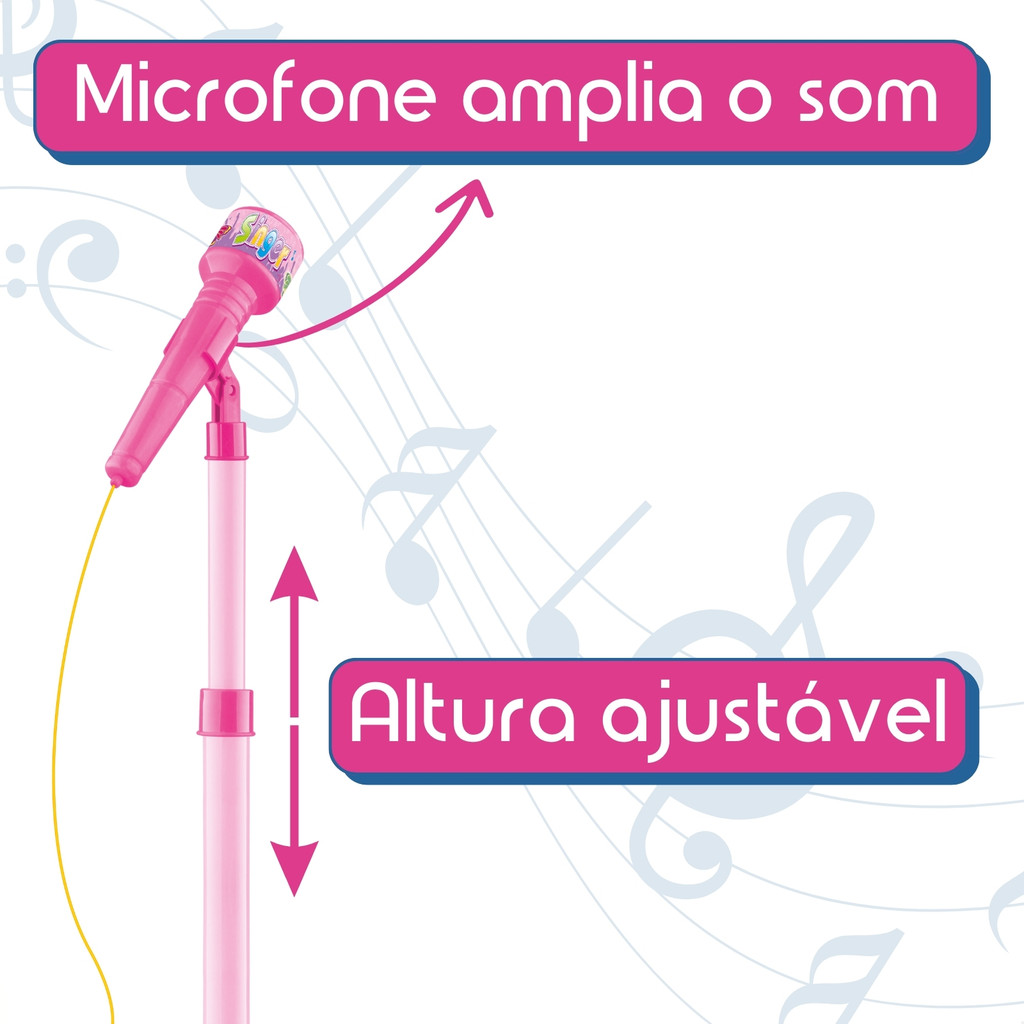 Guitarra e Microfone Infantil Instrumento Brinquedo Musical com Luz e Som