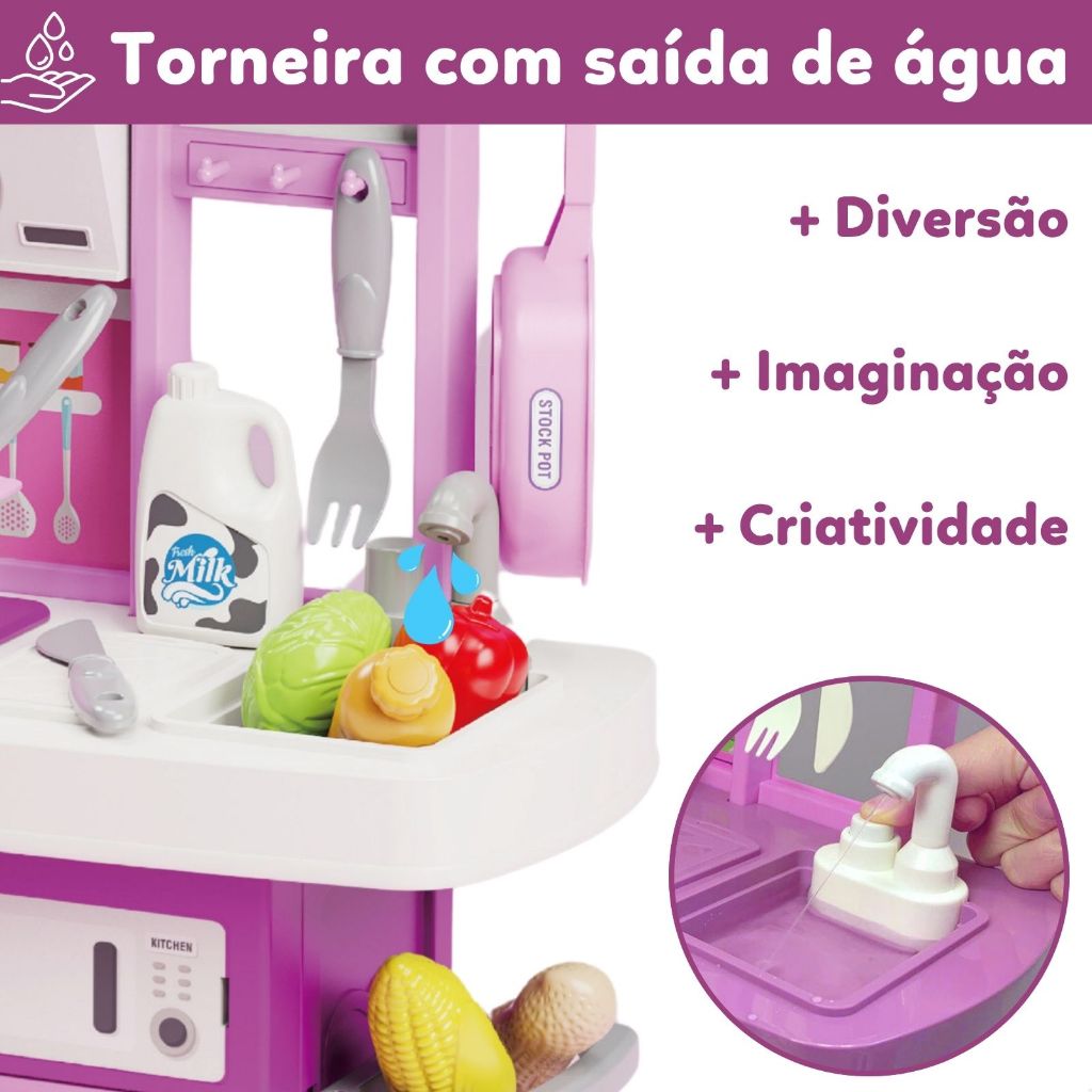 Kit Cozinha De Brinquedo Infantil Completa Solta Água E Som