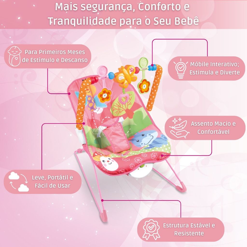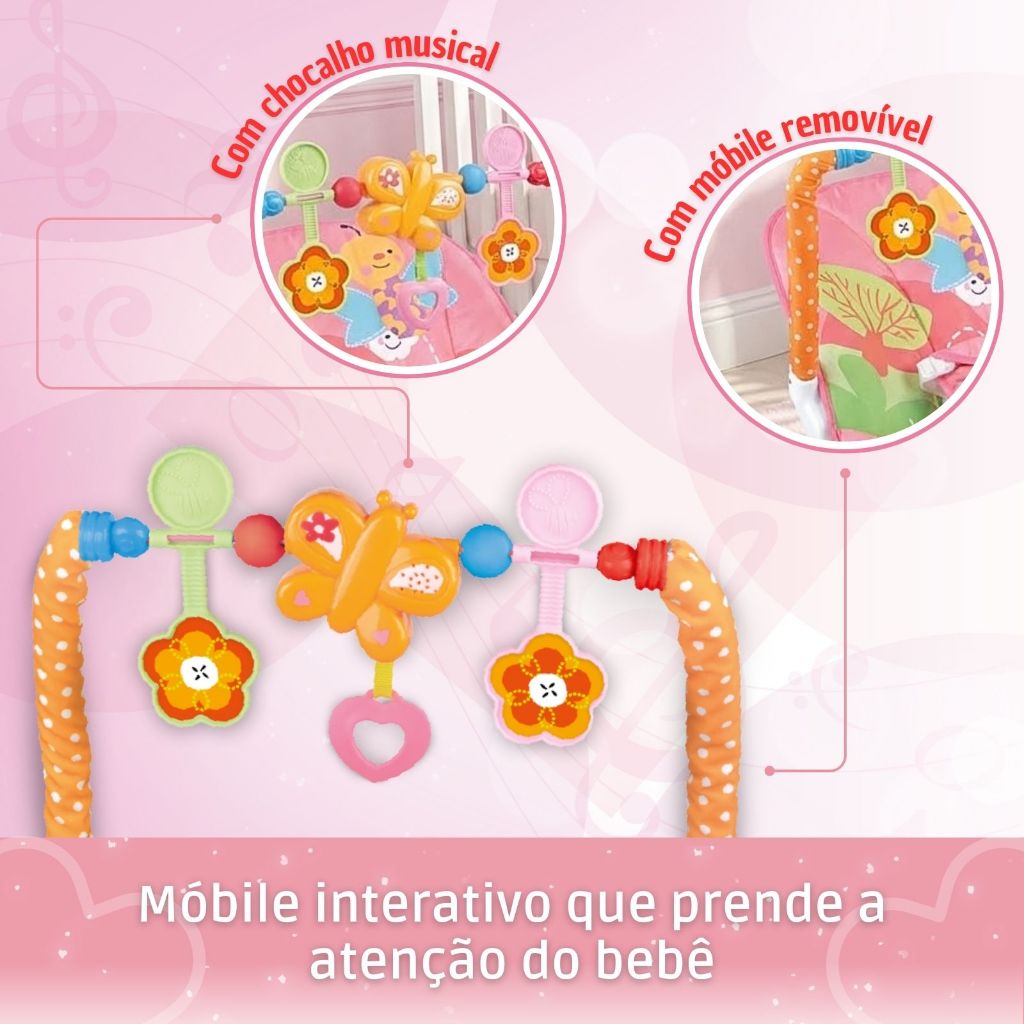 Cadeira Musical de Balanço e Descanso Vibratória Musical com Brinquedos Interativos Bebê Móbiles