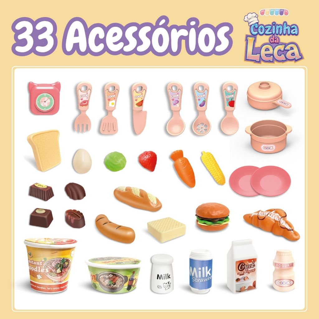 Cozinha Infantil Brinquedo com Luz Sai Água de Verdade Fogão 33 Acessórios