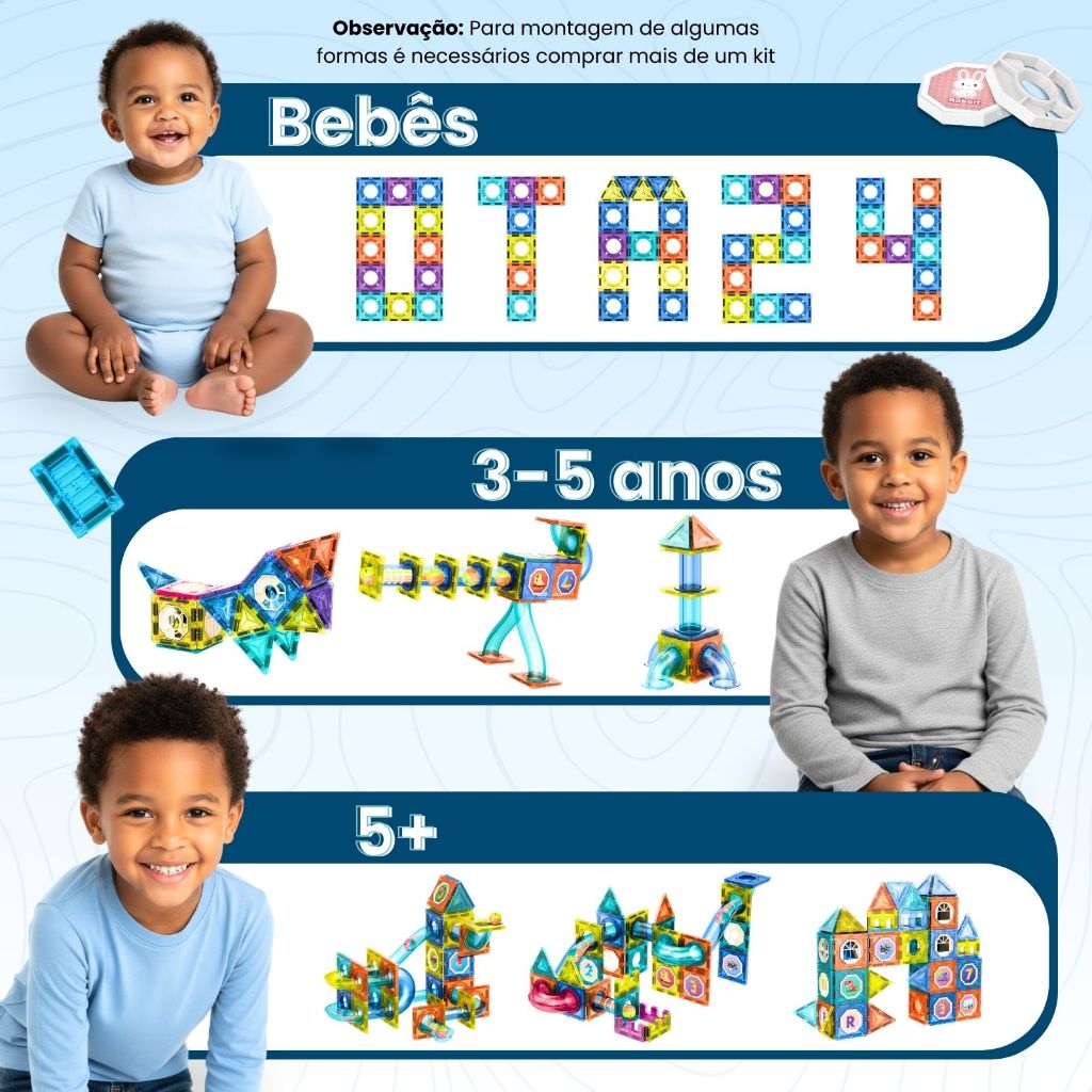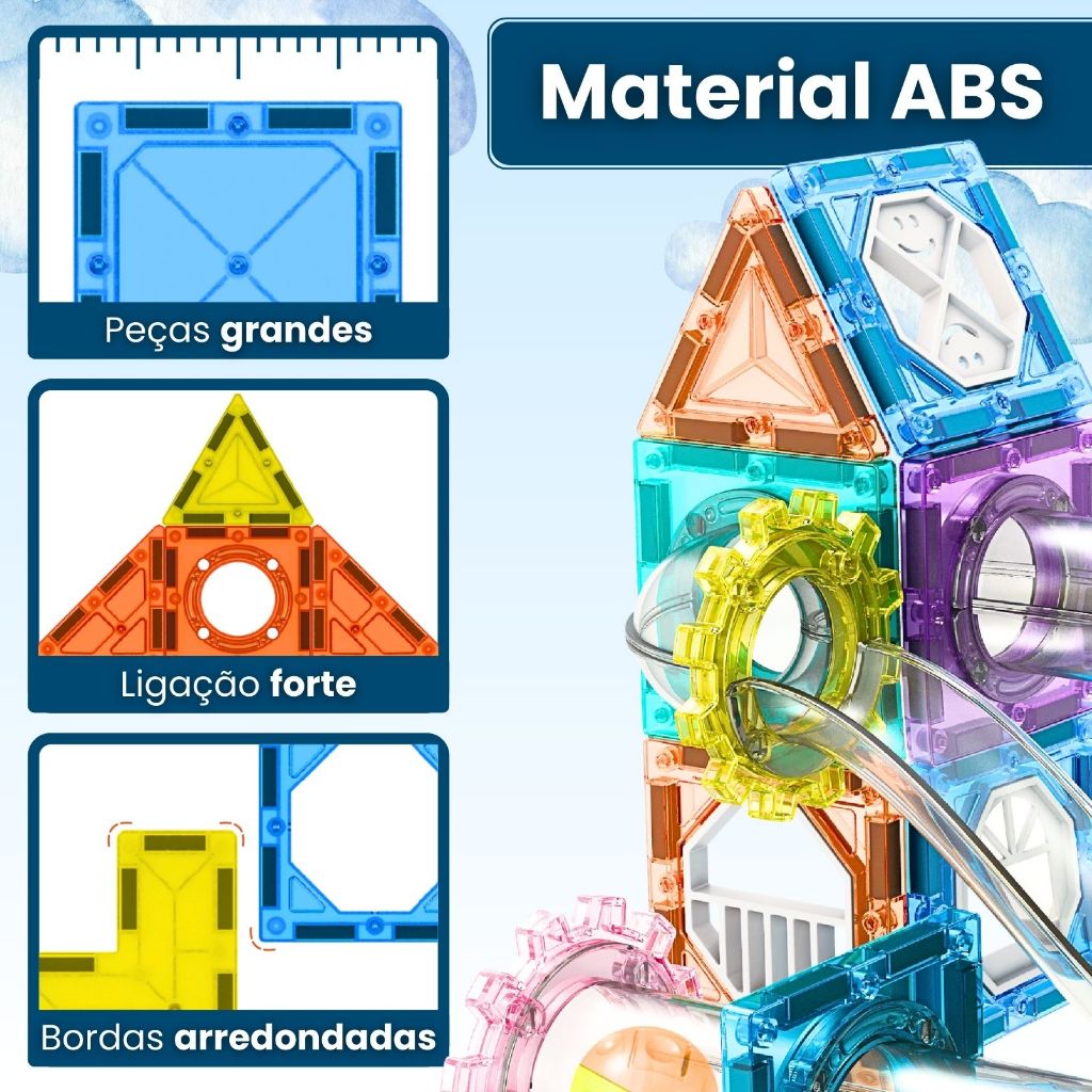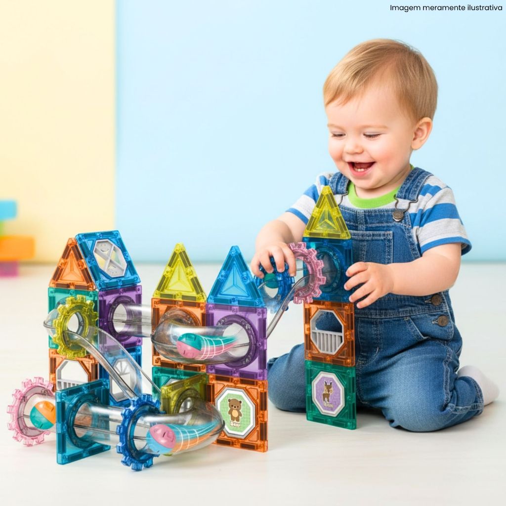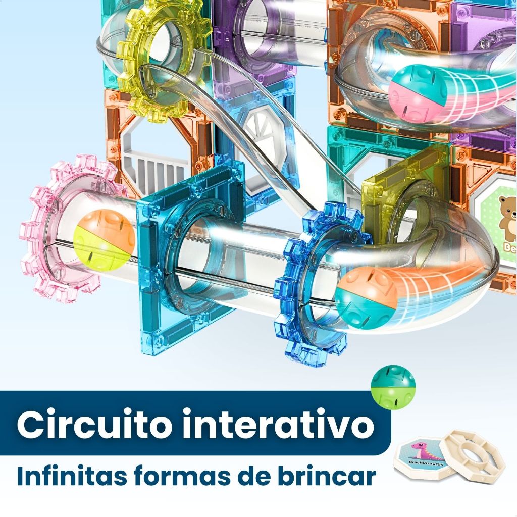Blocos de Montar Magnéticos Brinquedo Infantil Educativo 68 Peças Circuito com Bolinhas Aprendizagem