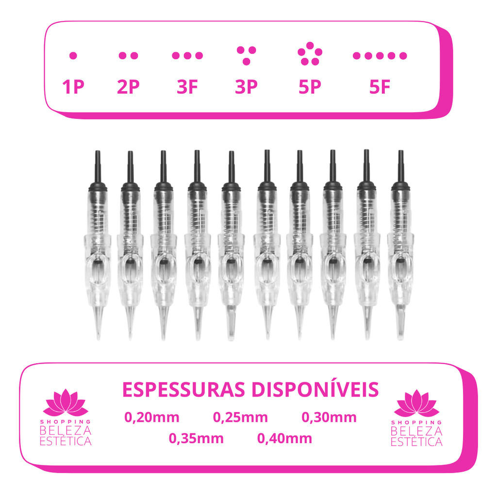10 Agulhas Dermografo Easy Click 1 Ponta/ 2 Pontas/ 3 Pontas/ 5 Pontas