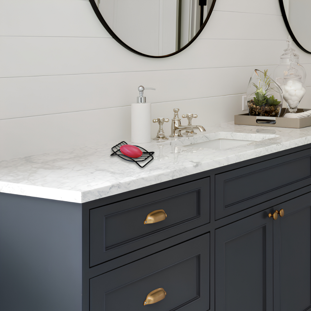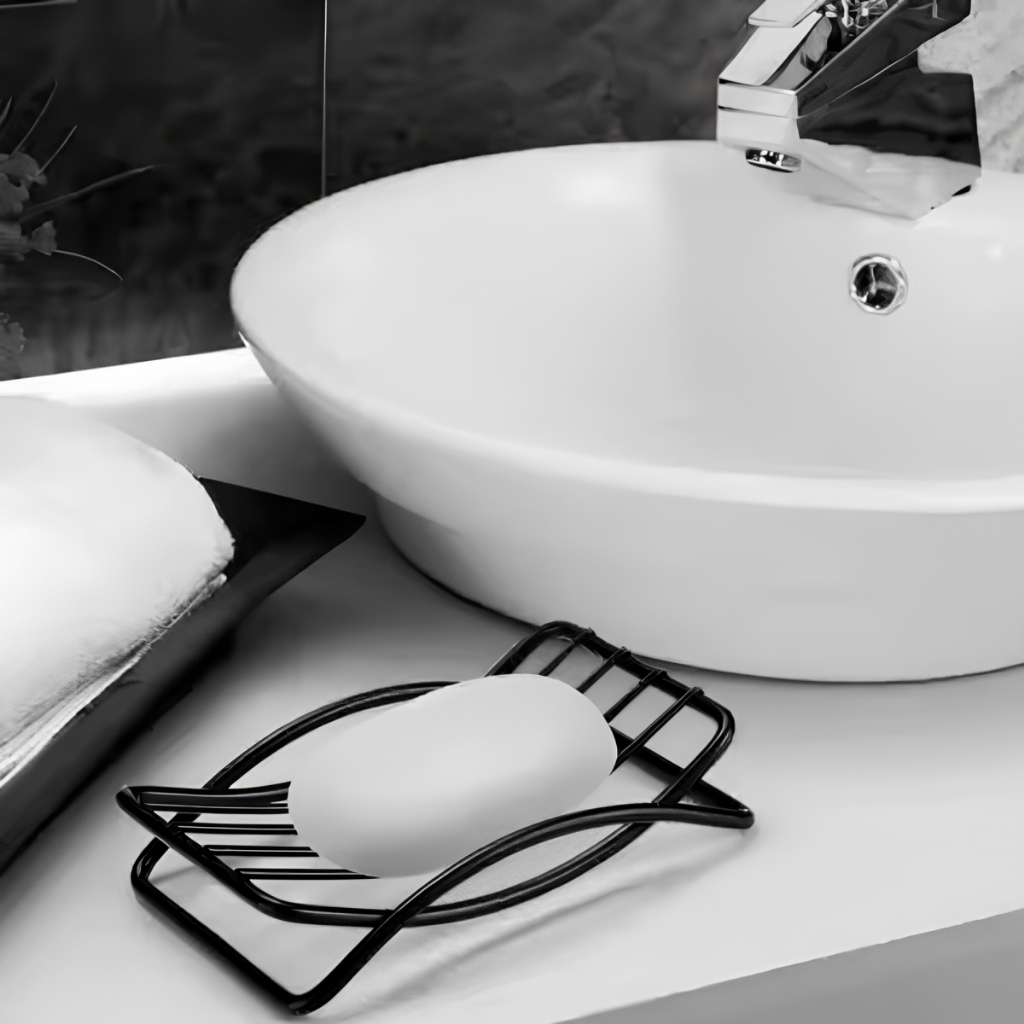 Saboneteira Aramada Aço Inox Preto Banheiro Porta Sabonete Design Moderno Escoamento Bancada
