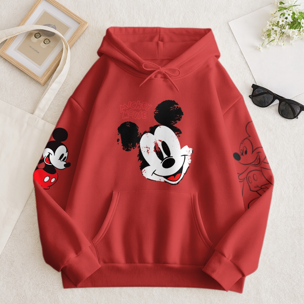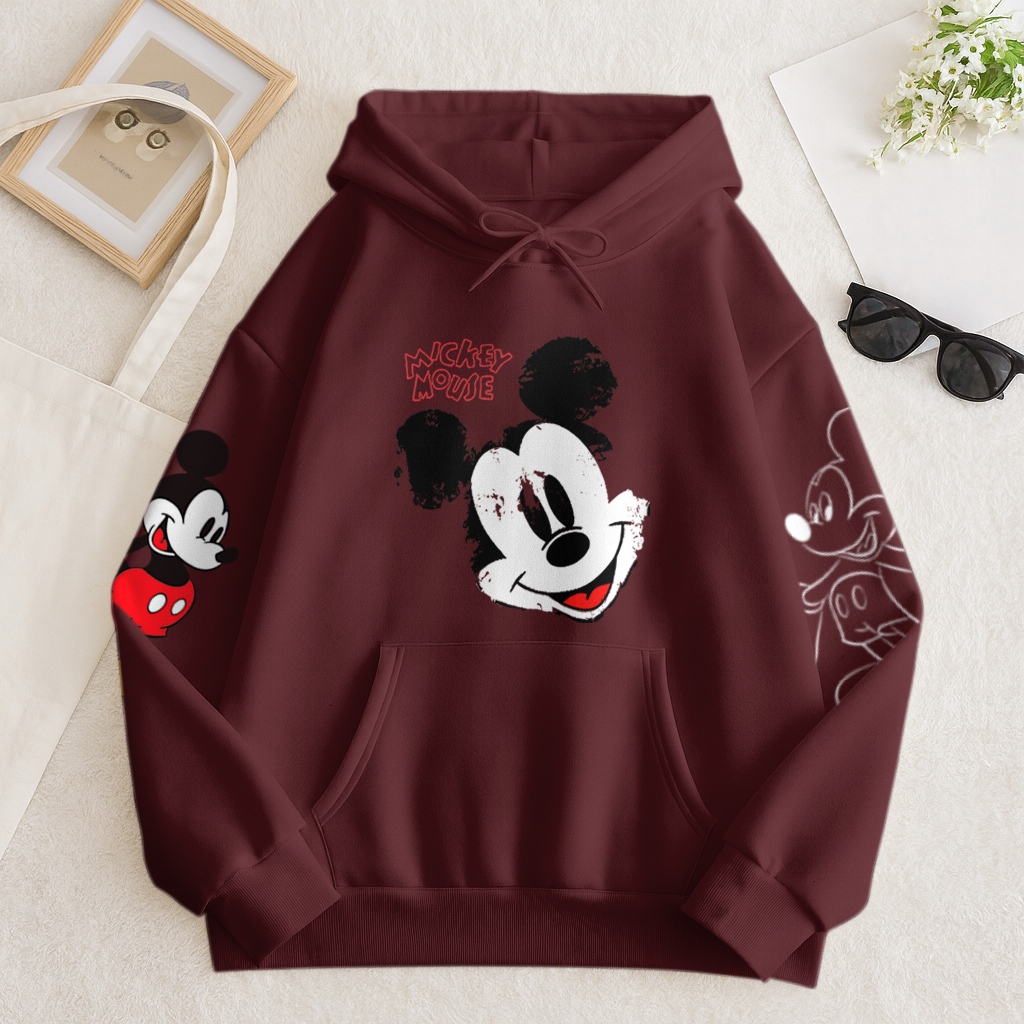 Moletom Canguru Para o Inverno Feminino Com Capuz Mickey Mouse Folgado