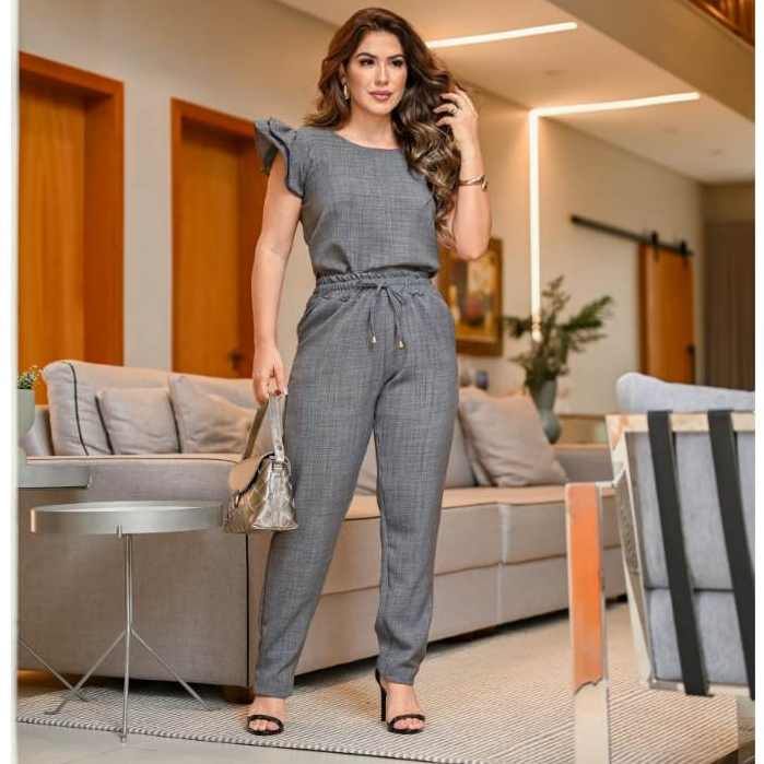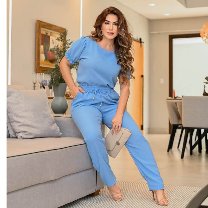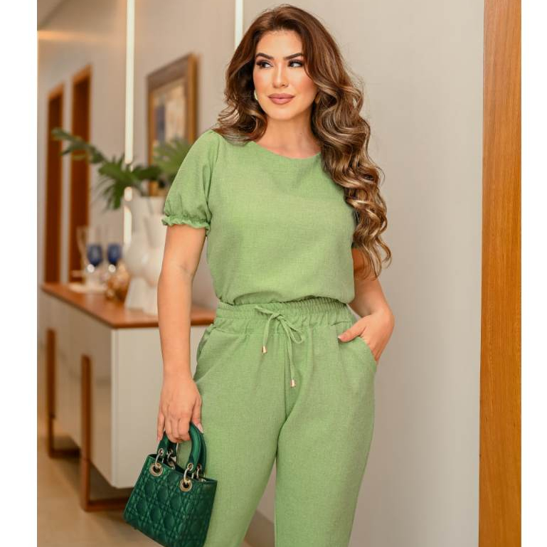 Conjunto Scrub Feminino Casual Social Elegante Blusa Calça Tecido em Linho de Algodão Alfaiataria Confortável Roupa Feminina Promoção Exclusiva