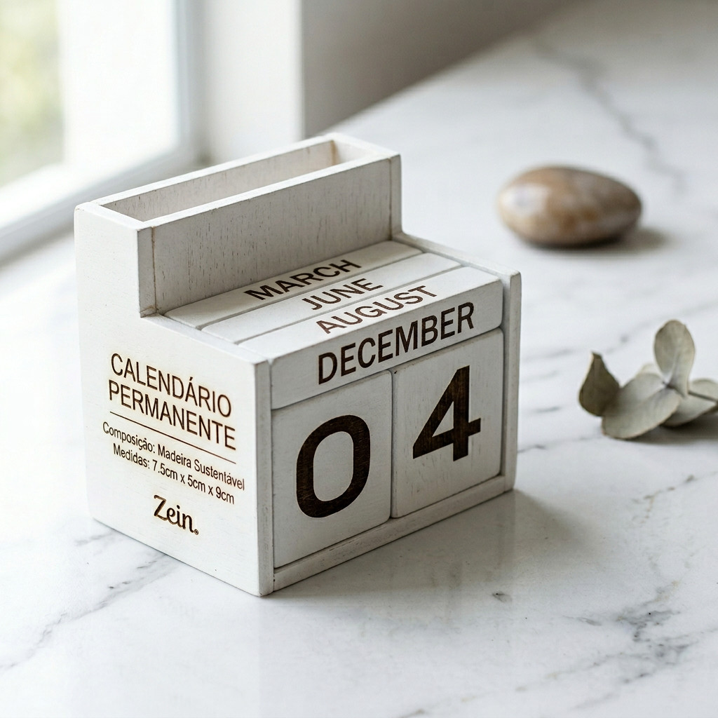 Calendário Permanente de Madeira Decorativo e Sustentável para Organização Diária