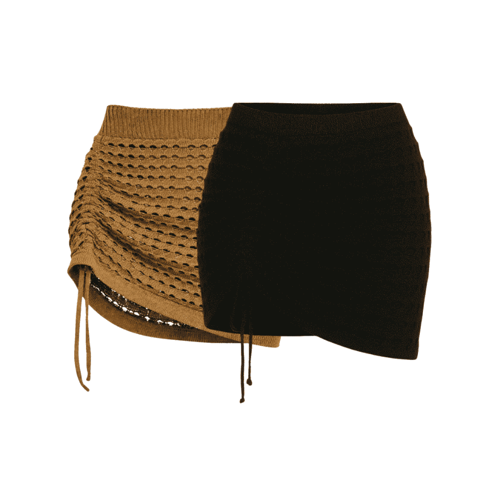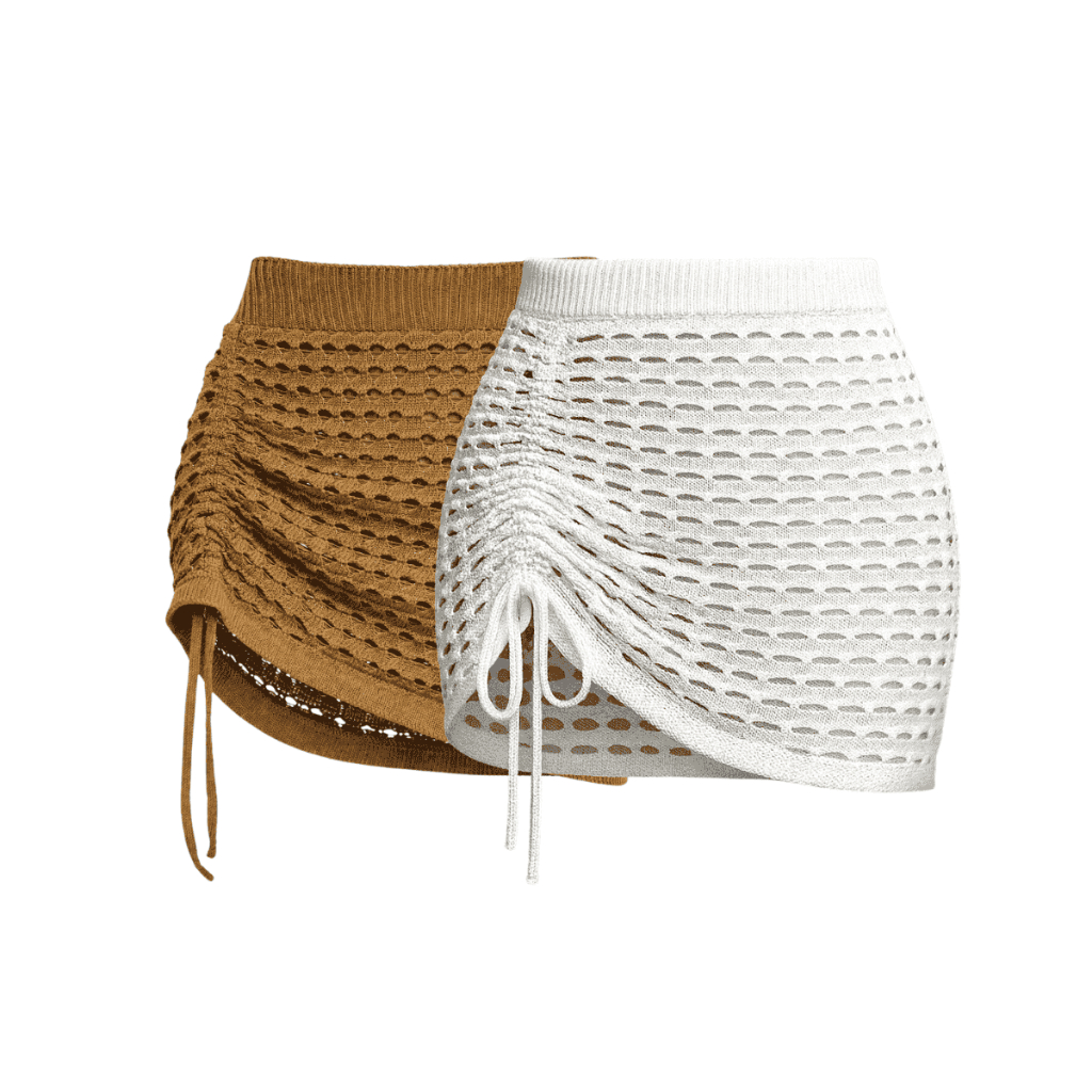 Kit c/ 2 Peças Sainha Mini Curta Saida de Praia Verão de Tricot com Puxe