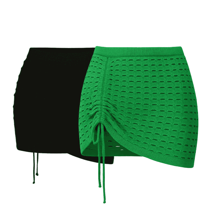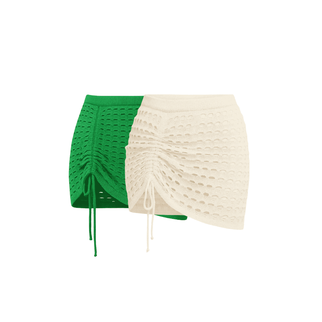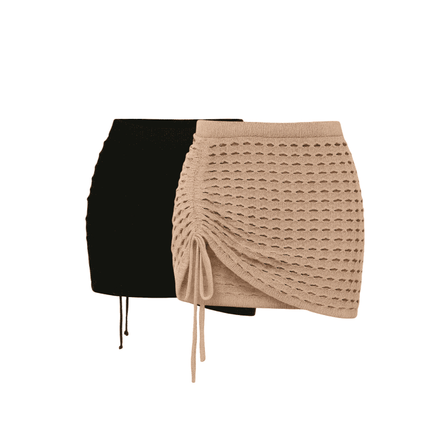 Saida de Praia Kit c/ 2 Peças Saia Mini Trico com Puxe Lateral Verão Piscina
