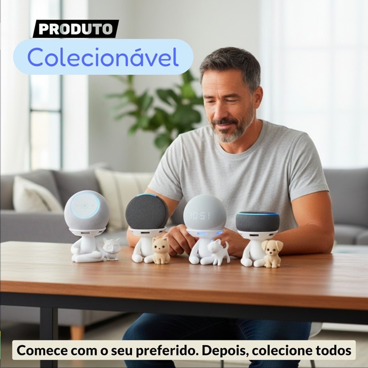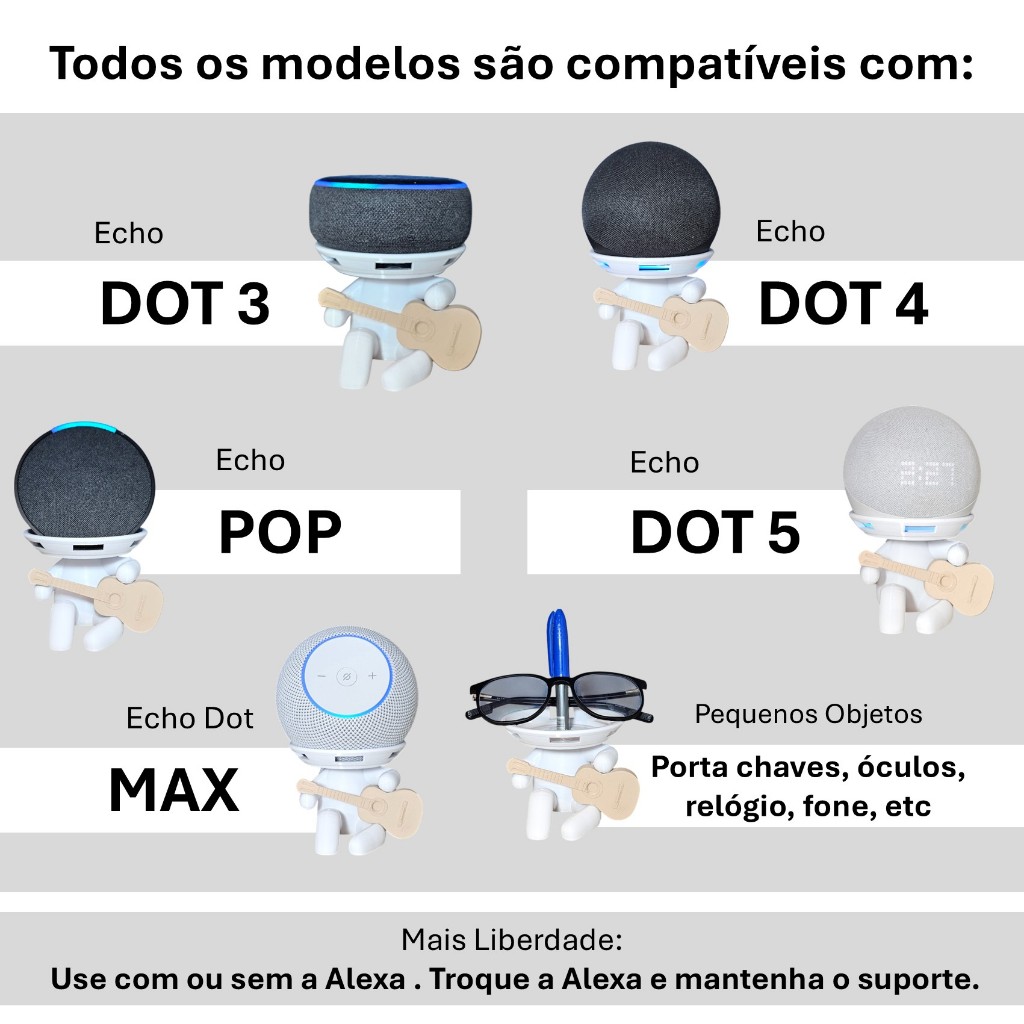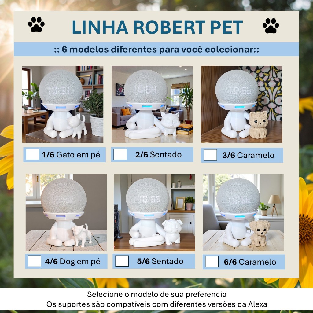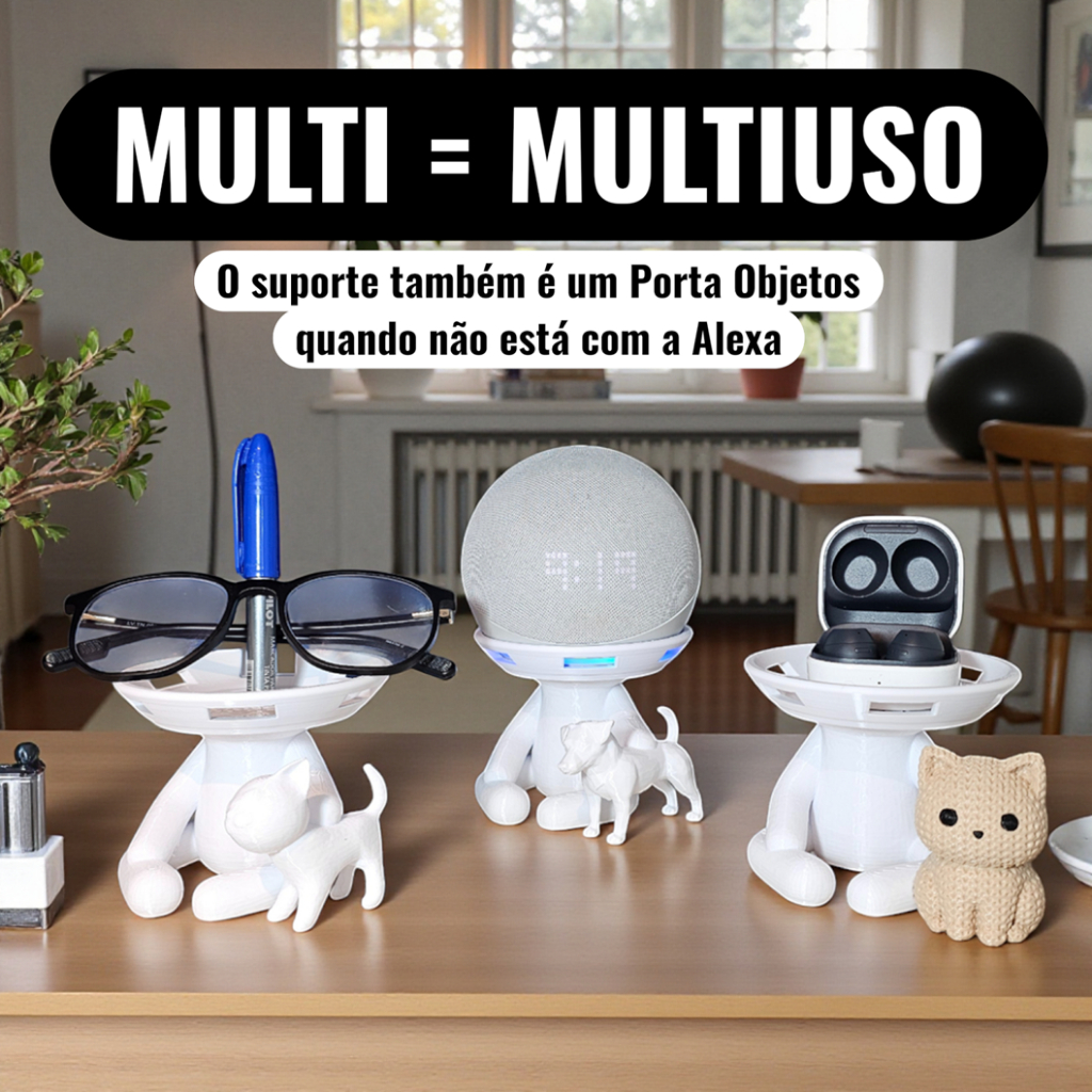 Suporte Alexa Echo Dot 3, 4 e 5, Echo Pop e Echo Max Coleção Robert PETS Multiuso Decoração Presente