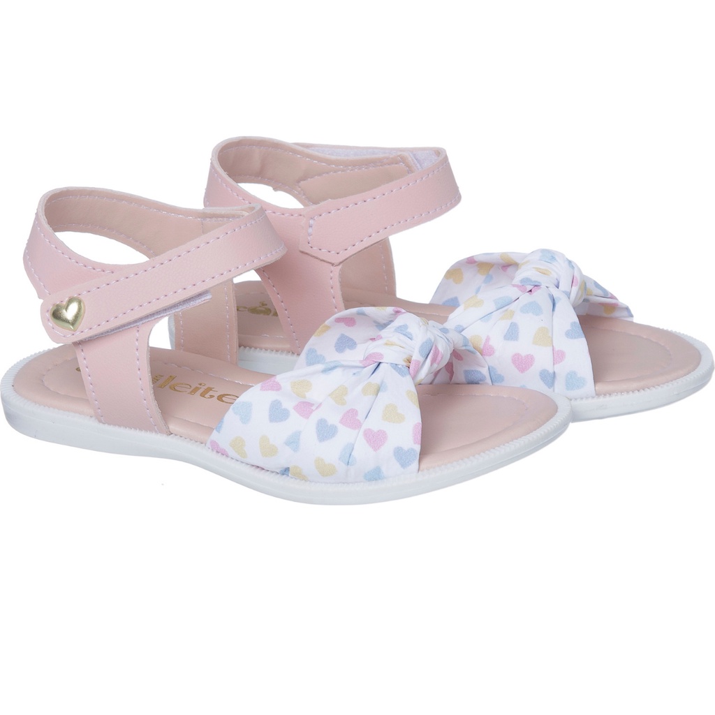 Sandalia Infantil Feminina Coração Conforto Calce Fácil - Café com Leite