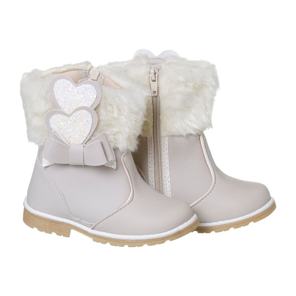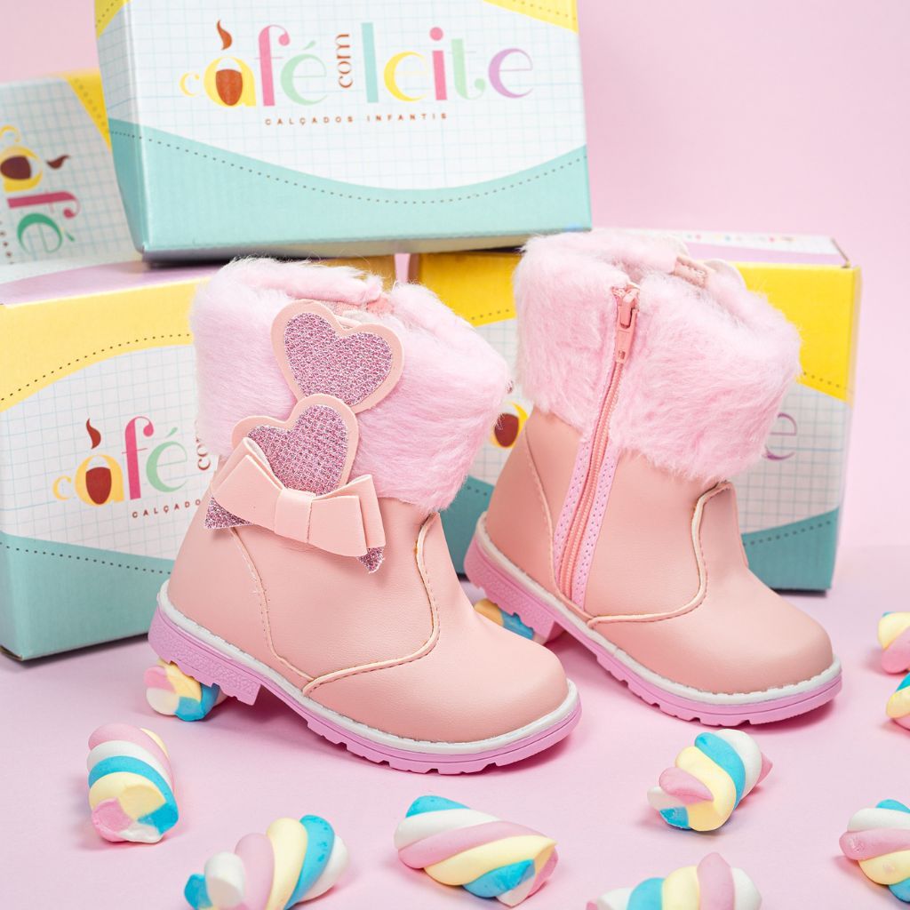 Bota Infantil Feminina Inverno de Pelinho Coração-café com leite