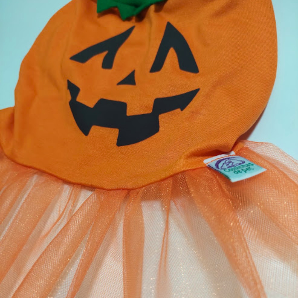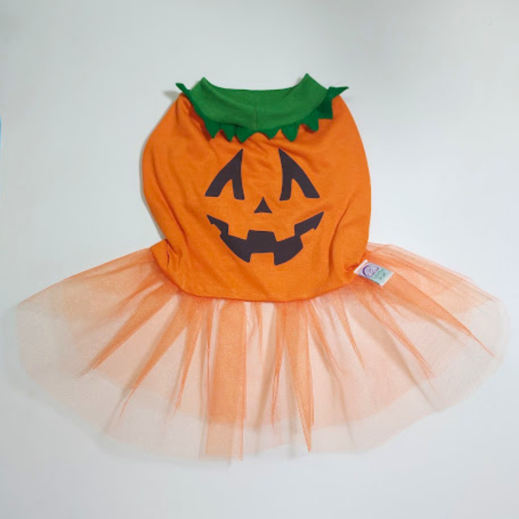 Roupa Pet Vestido Abóbora para Cachorros e Gatos Fantasia Halloween