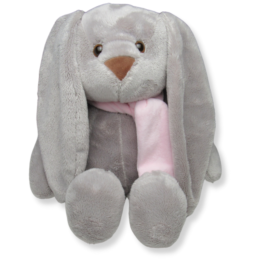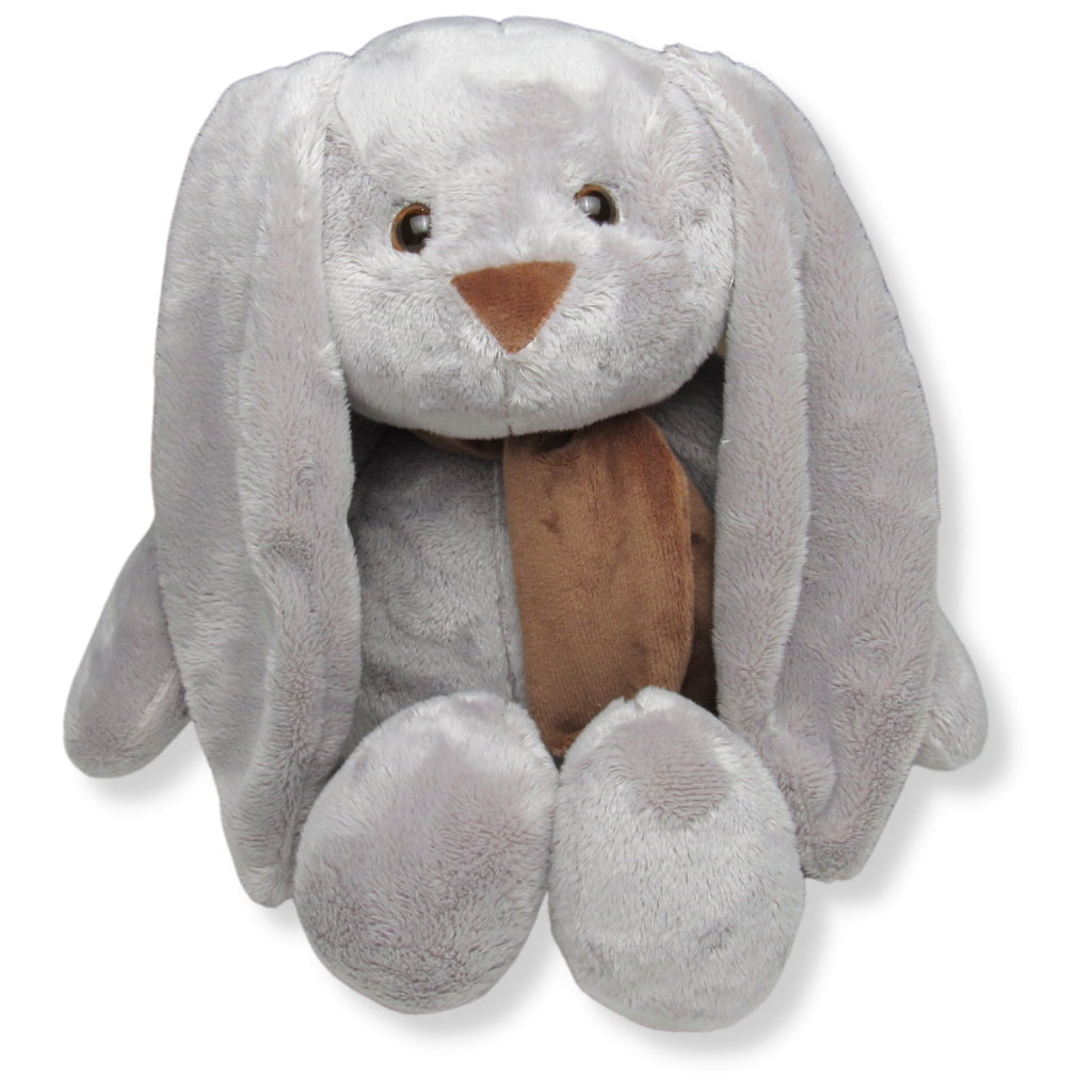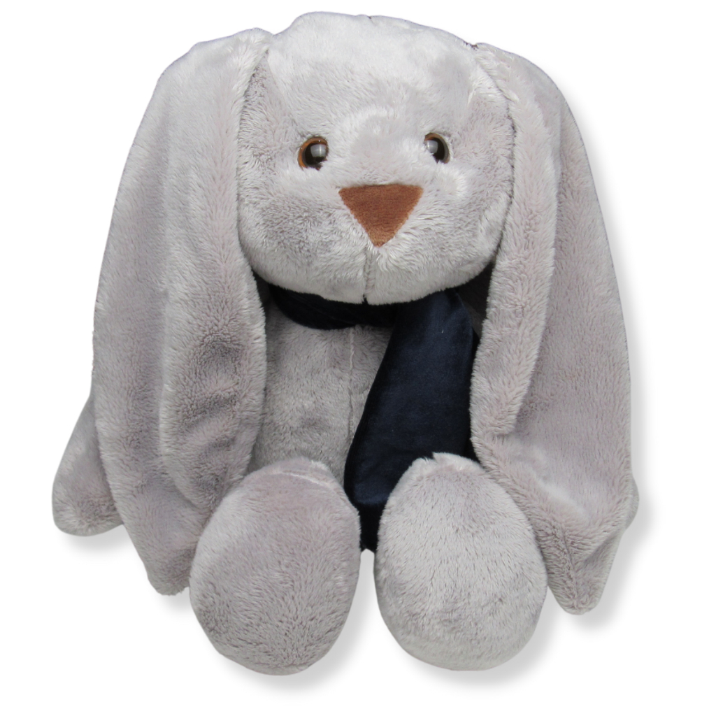 Coelho Pelúcia Cinza Com Cachecol 40cm Decoração Antialérgico Infantil
