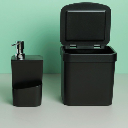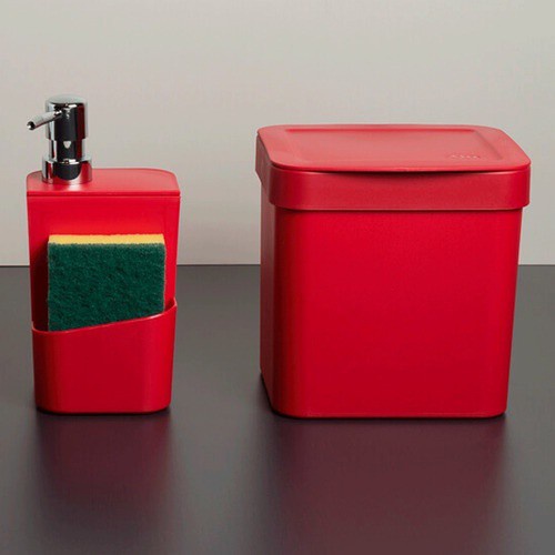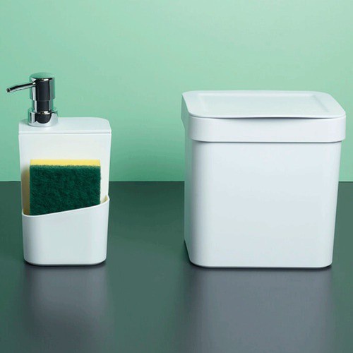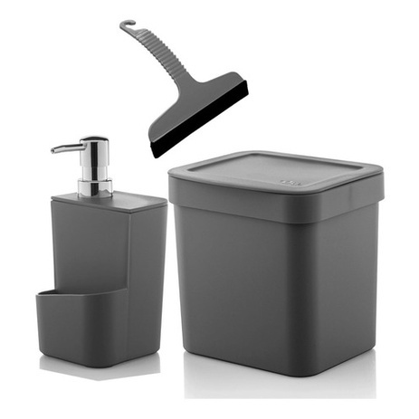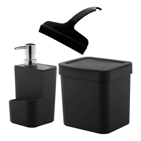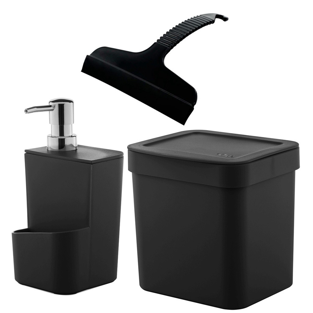 Kit Lixeira Para Cozinha 2,5 L Porta Detergente e Rodinho De Pia Utensilios Domesticos