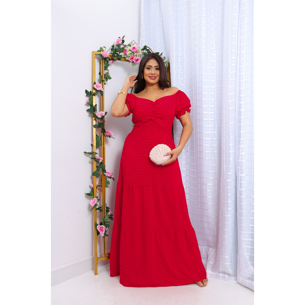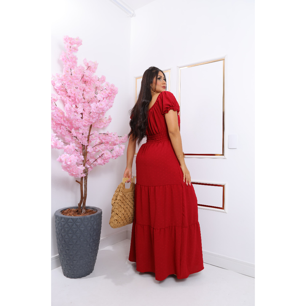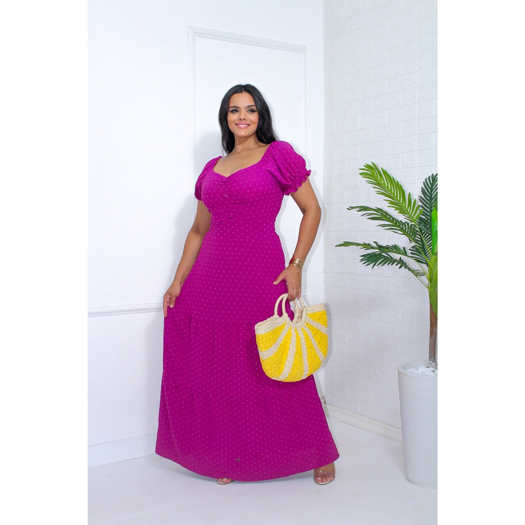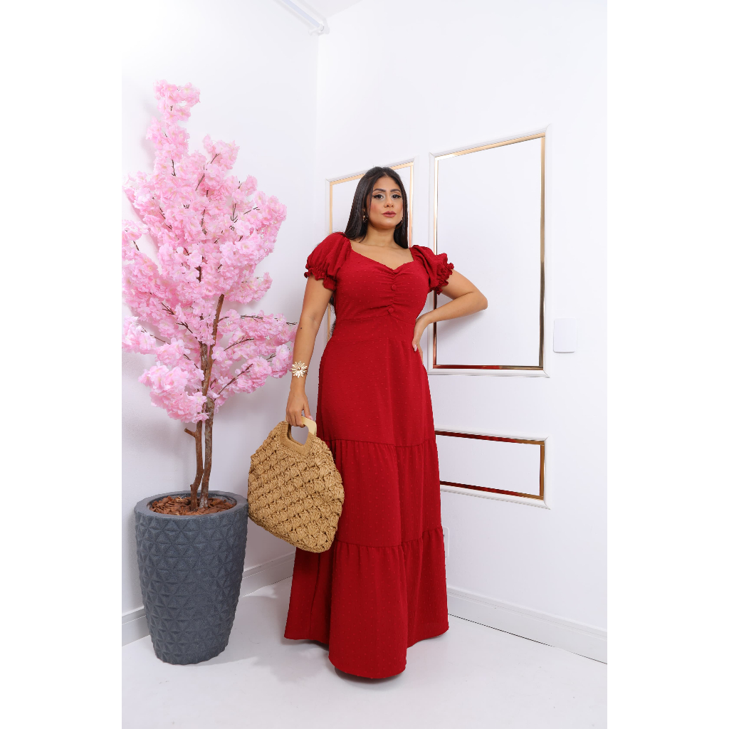 Vestido Longo femenino Vestido forrado com bojo detalhes de botões manga curta veste 38-44
