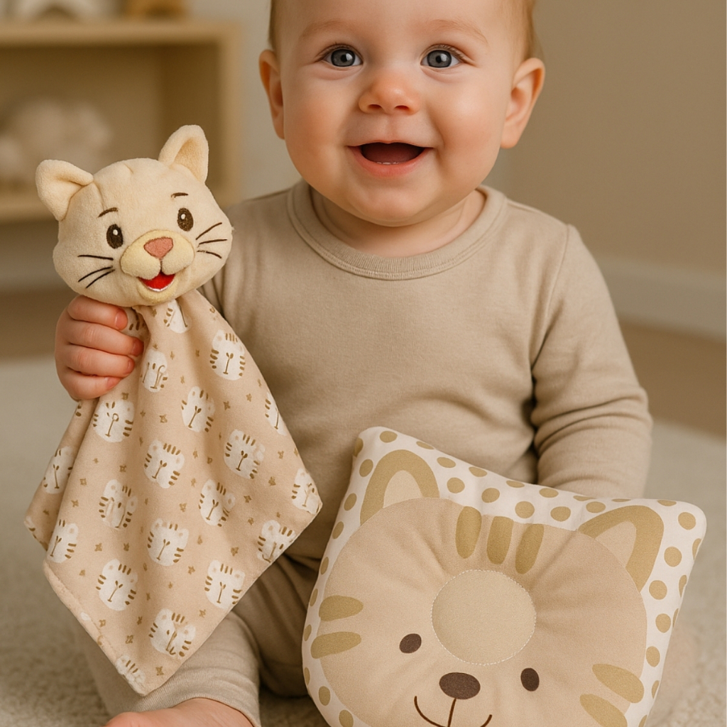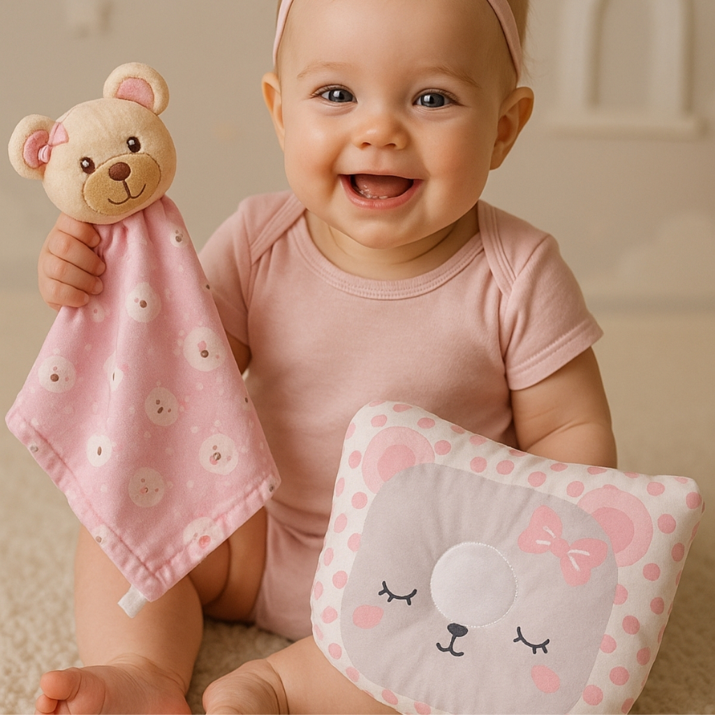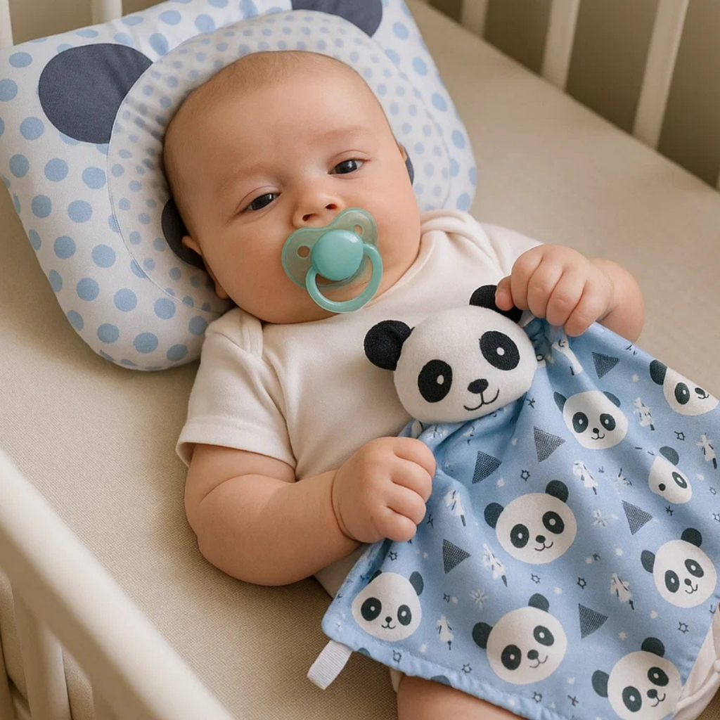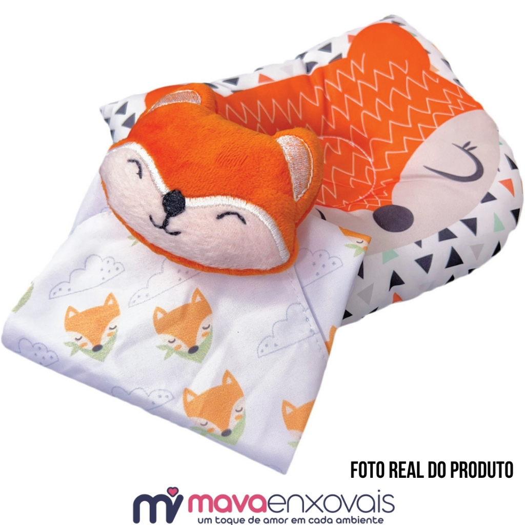 Kit Conjunto Naninha Paninho com Bichinho Pelúcia + Travesseiro Anatômico Bebê Apoio de Cabeça