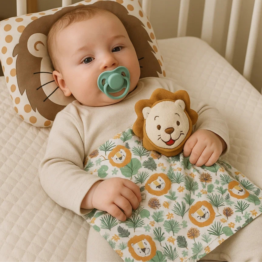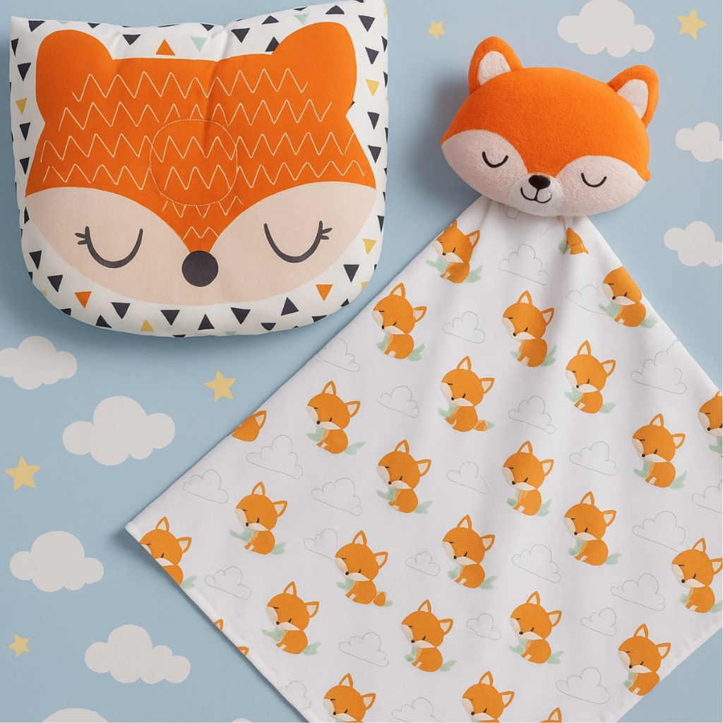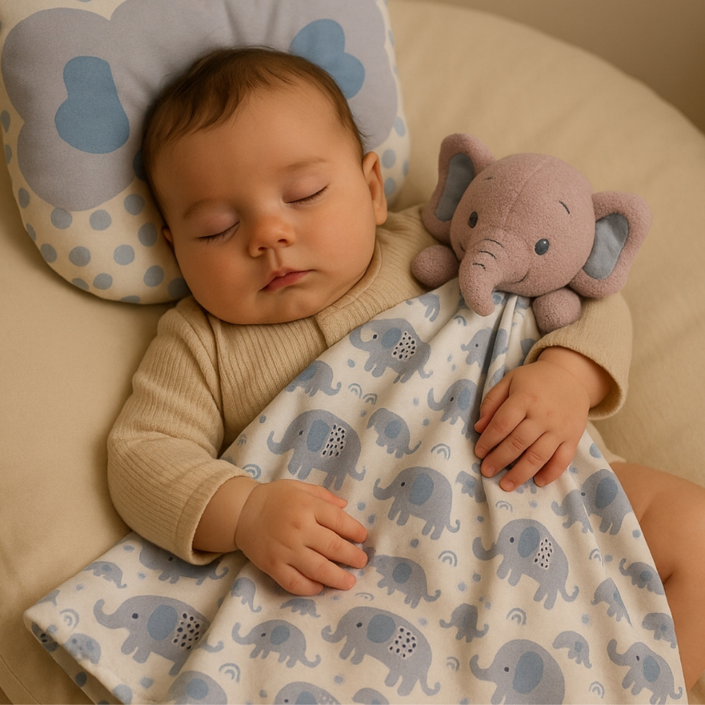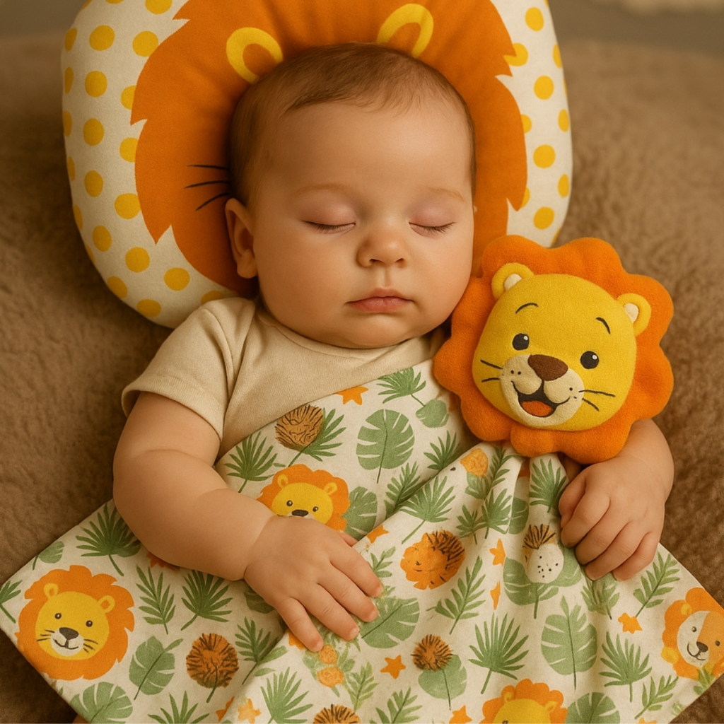 Kit Conjunto Naninha Paninho com Bichinho Pelúcia + Travesseiro Anatômico Bebê Apoio de Cabeça