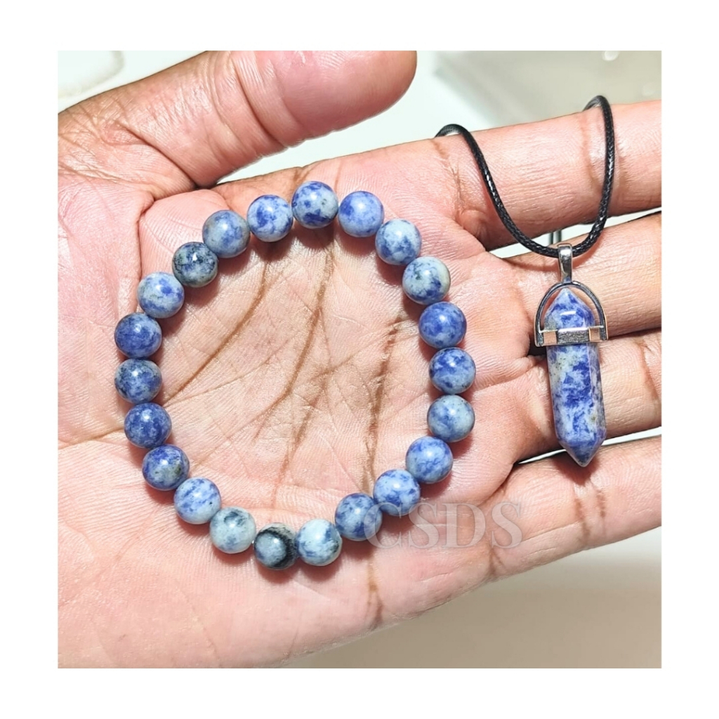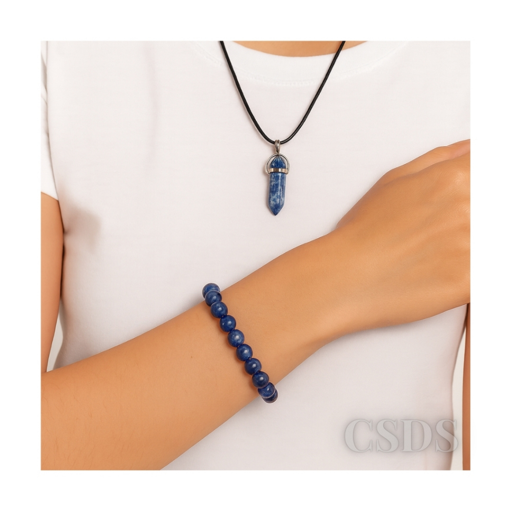 Pulseira Lapís Lazuli Pedra Natural Kit Pulseira + Colar Energia Espiritualidade, Riqueza Esfera 8mm