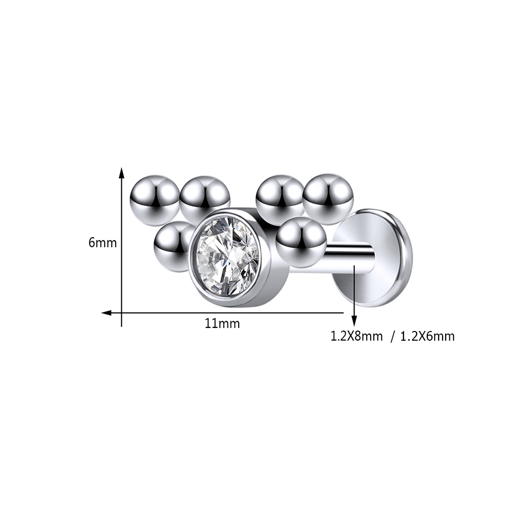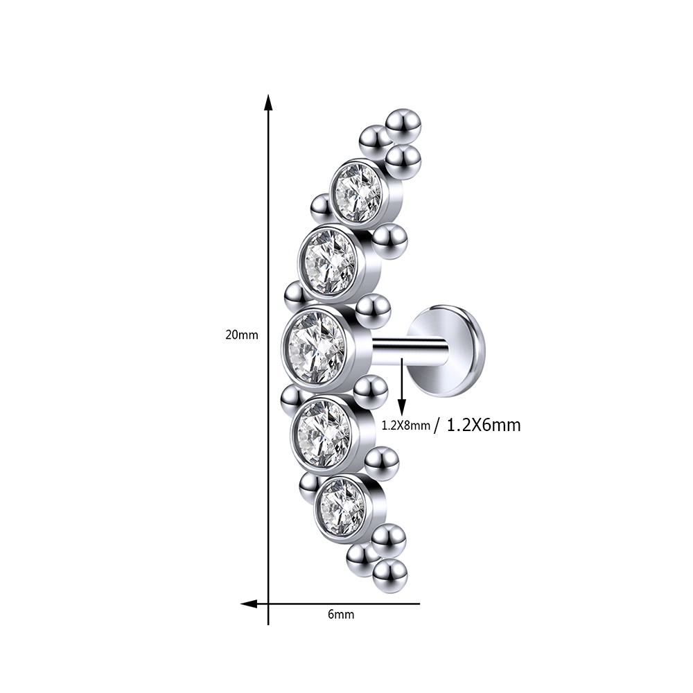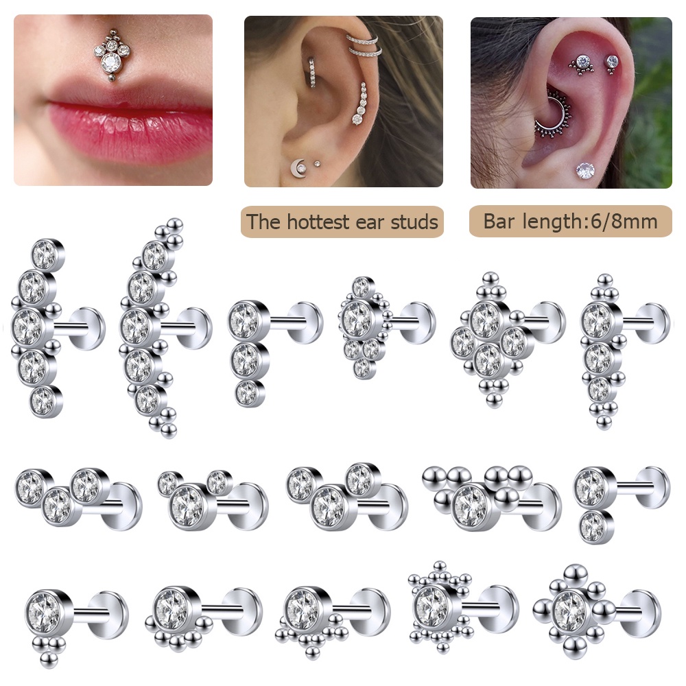 1 Pc 6/8mm Aço Inoxidável Labret Piercing Barra Cristal Orelha Studs Cartilagem Brincos Tragus Helix Piercings Jóias 16G