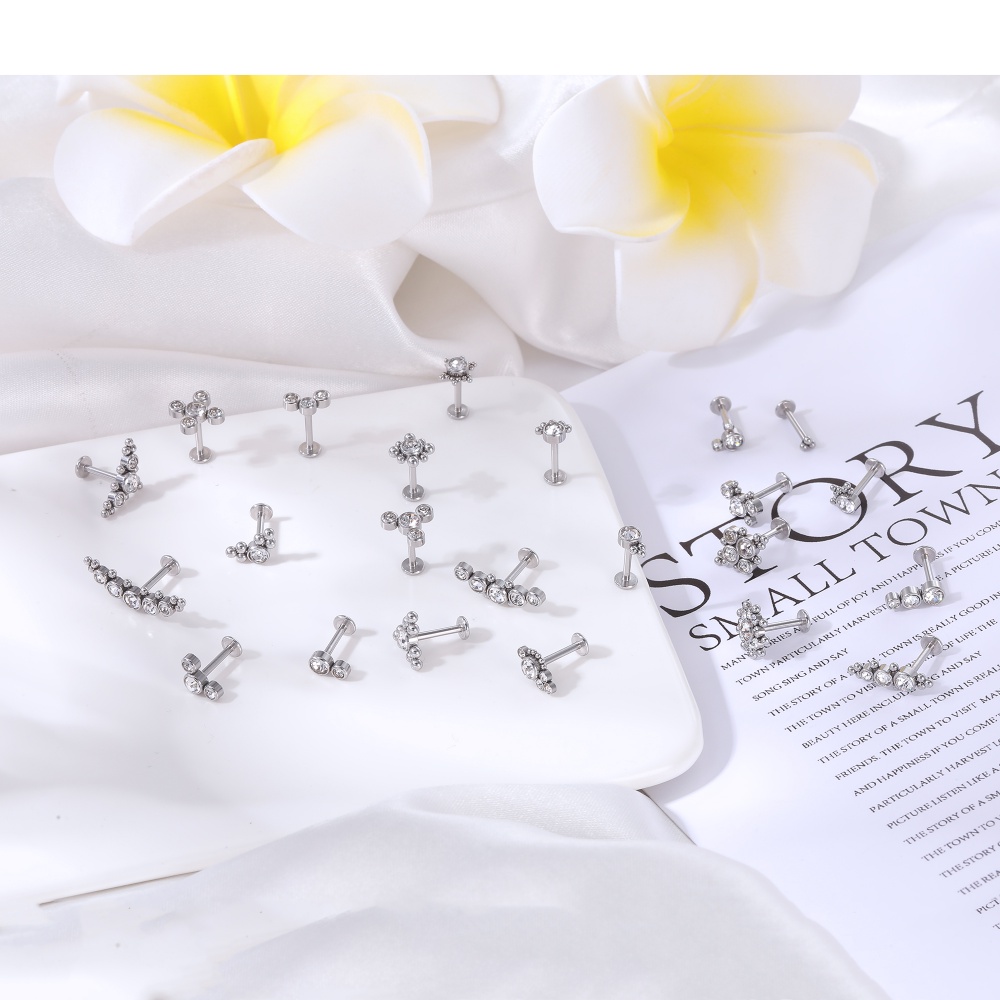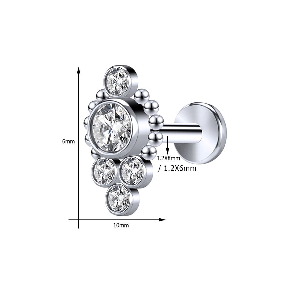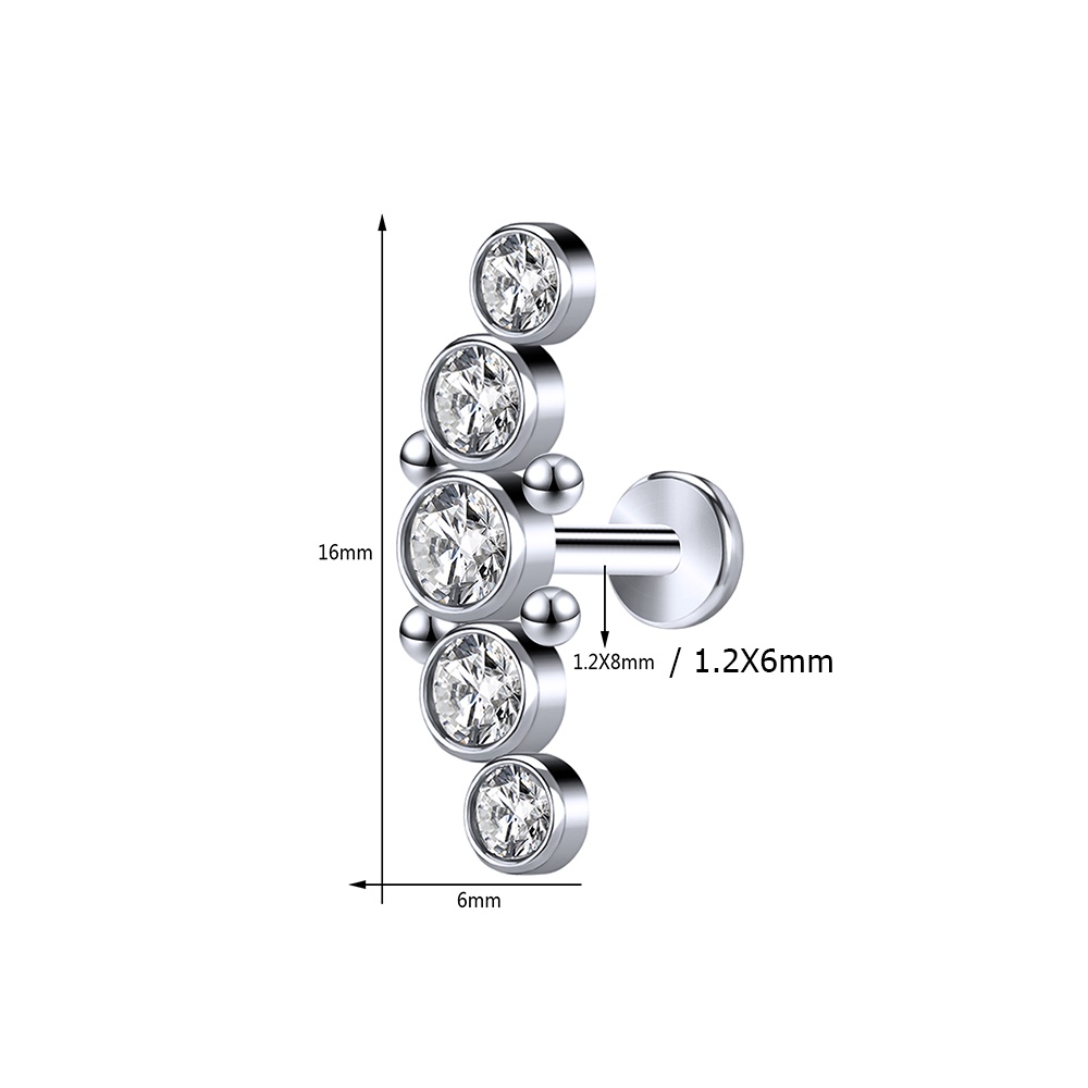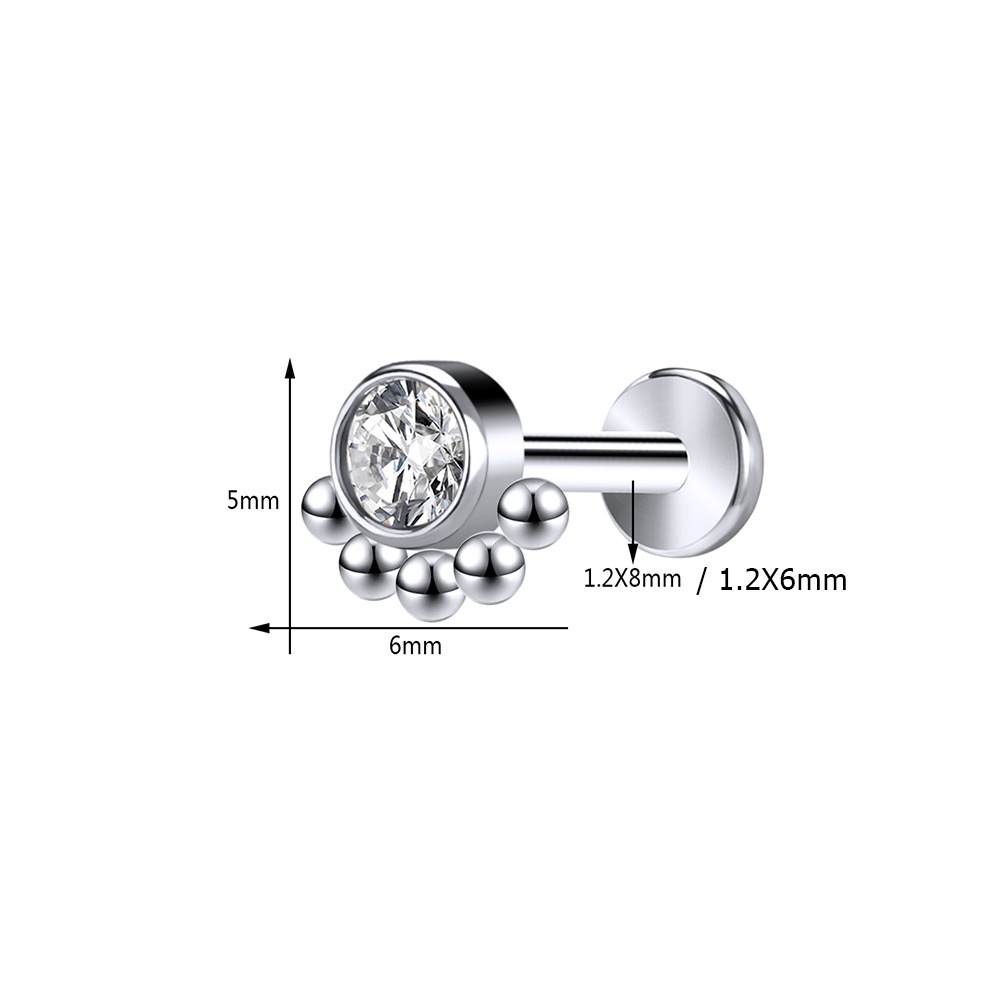 1 Pc 6/8mm Aço Inoxidável Labret Piercing Barra Cristal Orelha Studs Cartilagem Brincos Tragus Helix Piercings Jóias 16G