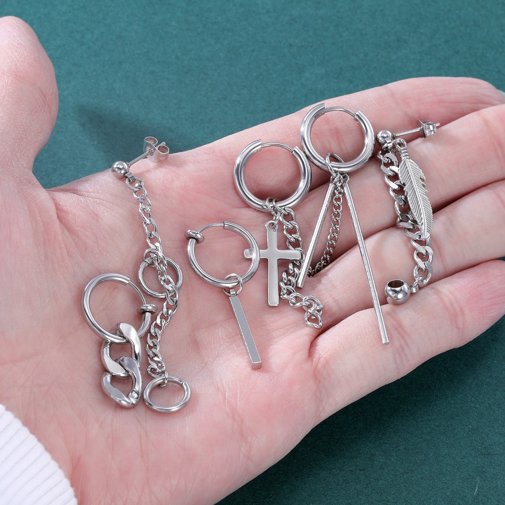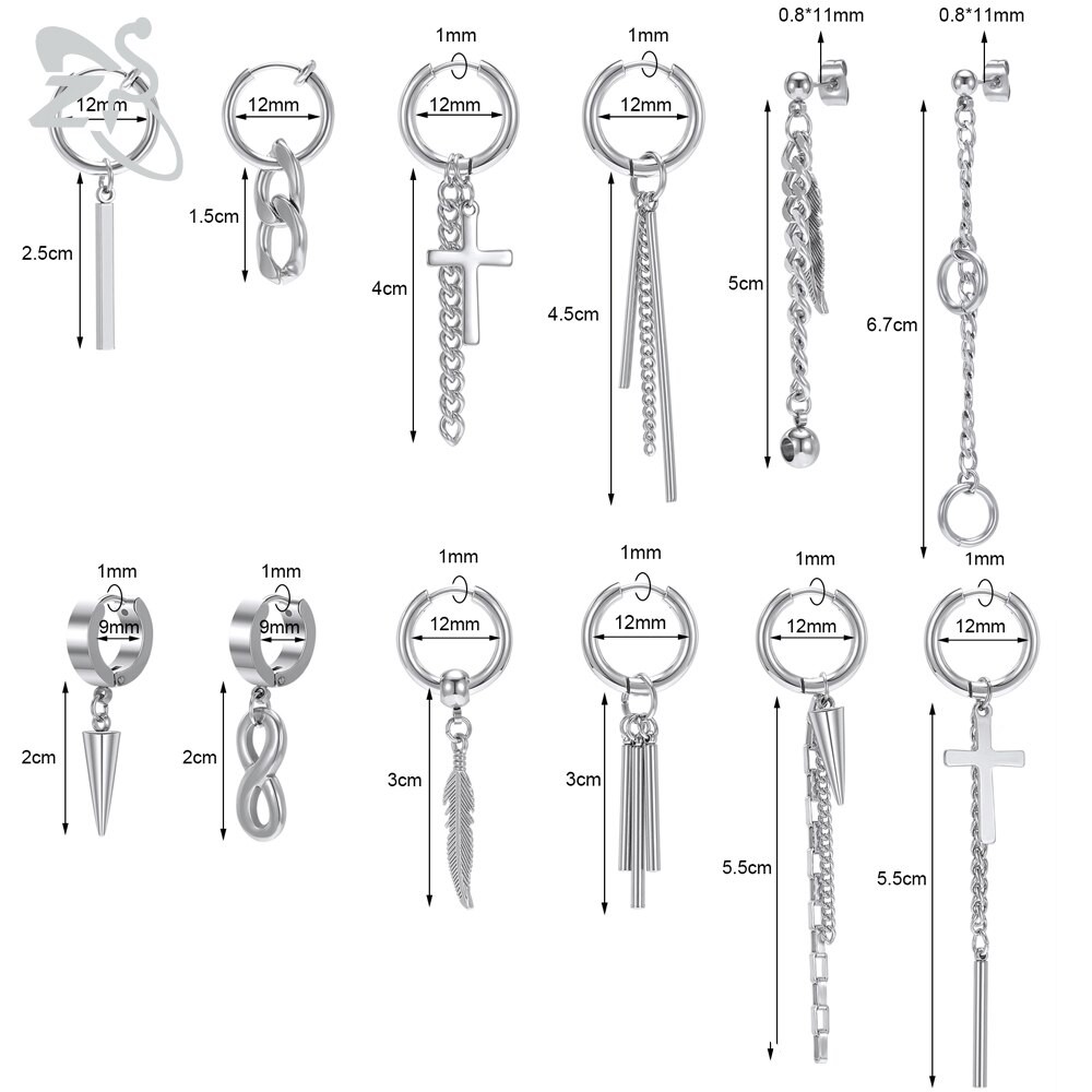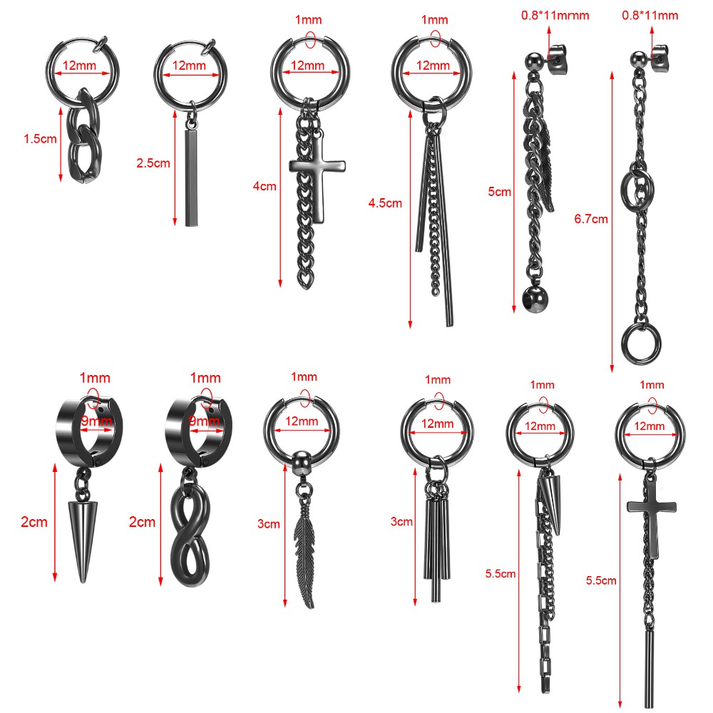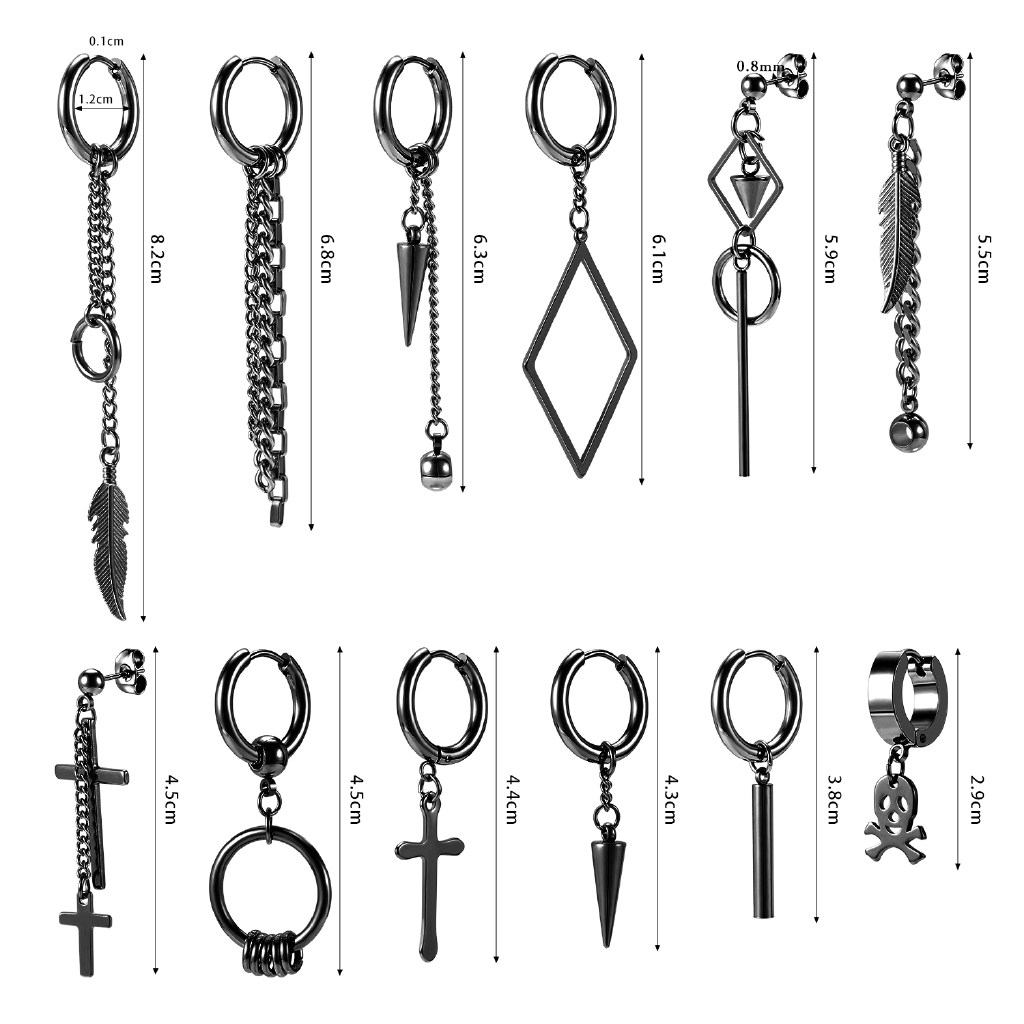 12 Pçs/set Estilo Coreano Brincos Pendurados Kpop Geométricos Pingente Ear Studs De Argola De Aço Inoxidável Long Tassel