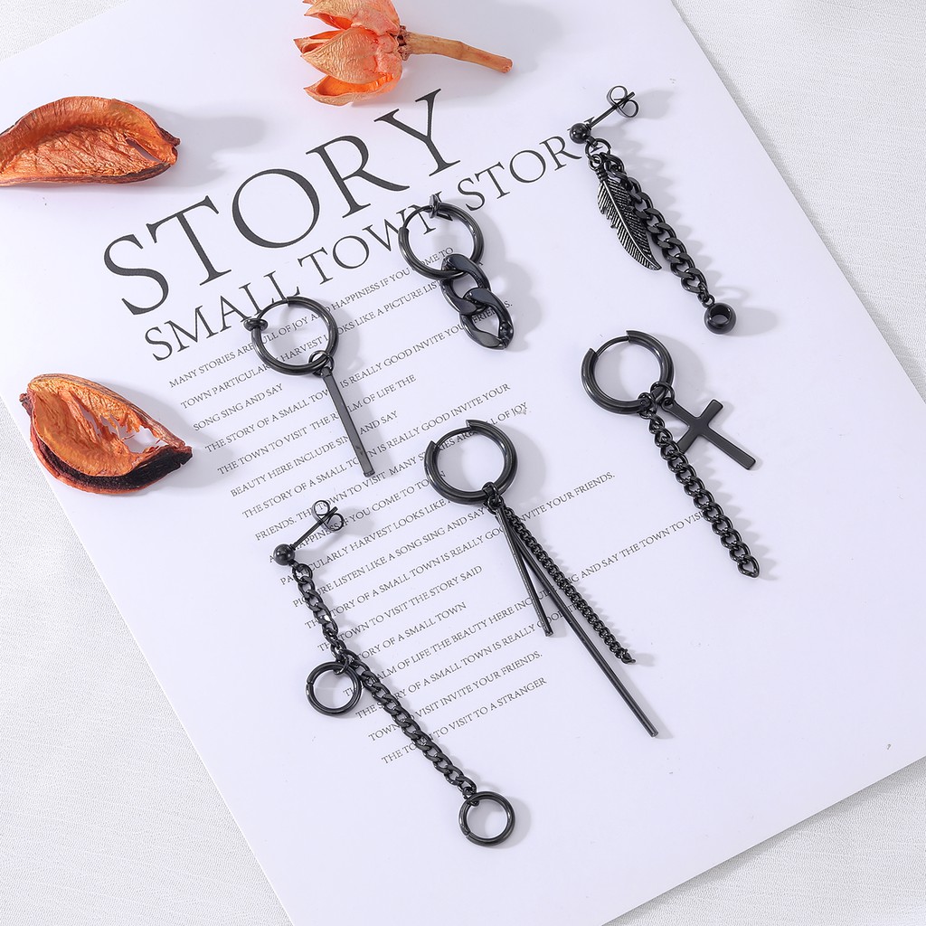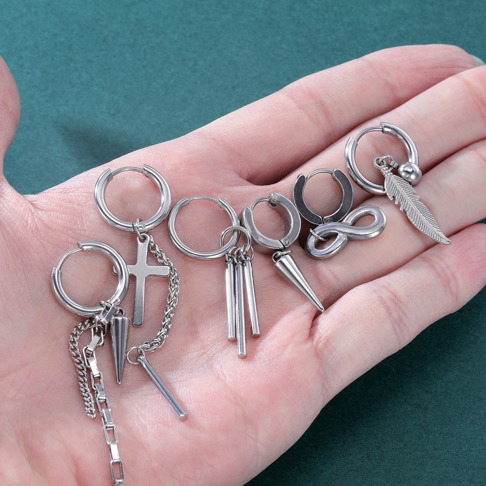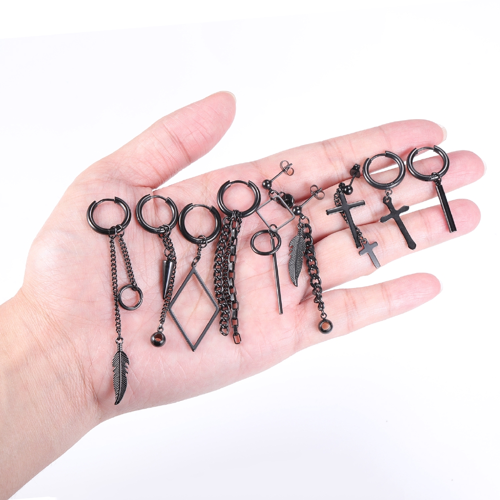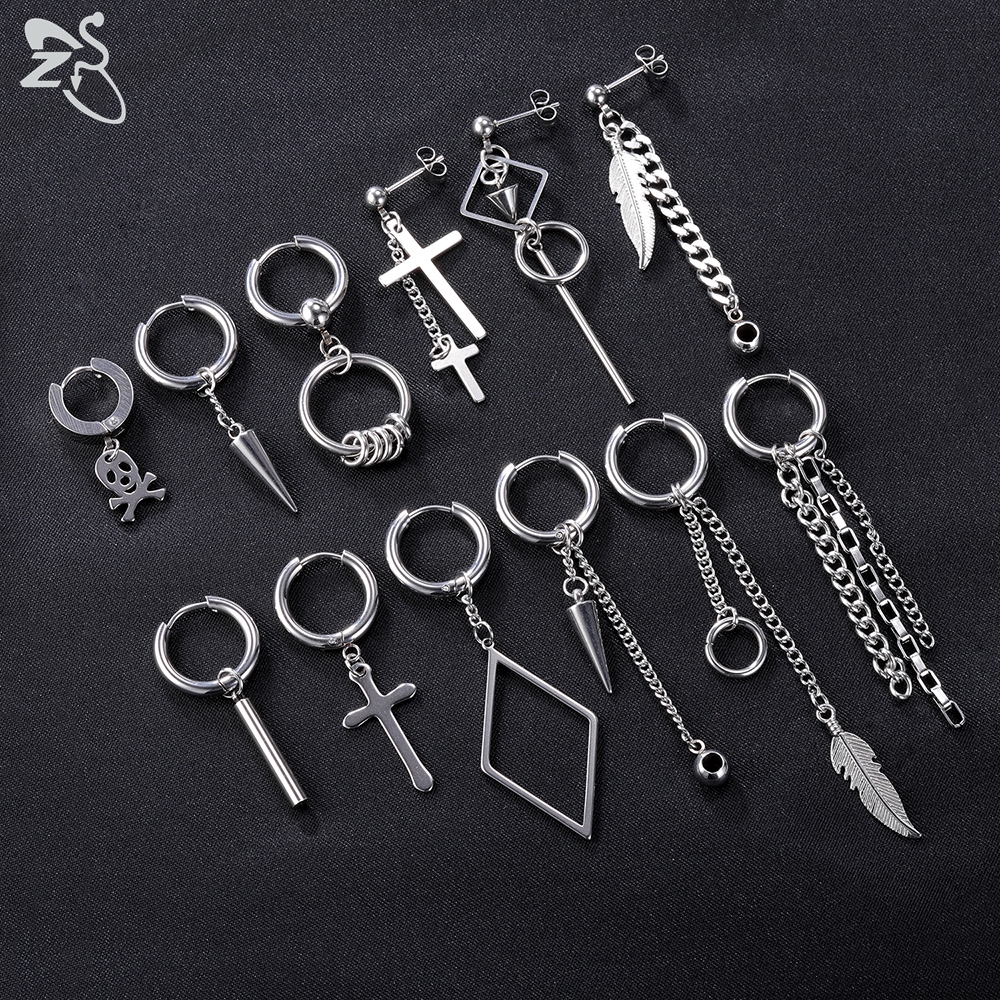 12 Pçs/set Estilo Coreano Brincos Pendurados Kpop Geométricos Pingente Ear Studs De Argola De Aço Inoxidável Long Tassel