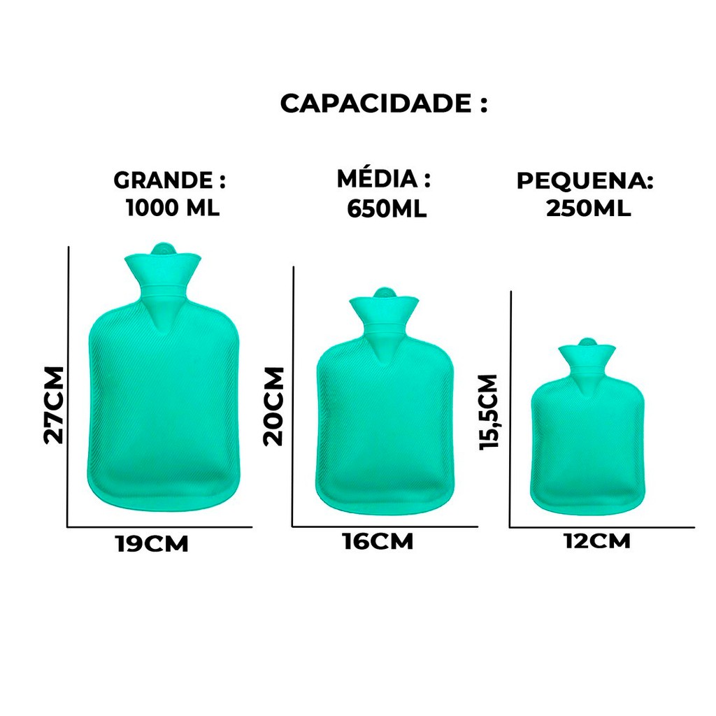 Bolsa Térmica Emborrachada Para Compressa Água Quente Ou Fria 250ml 650ml 1000ml