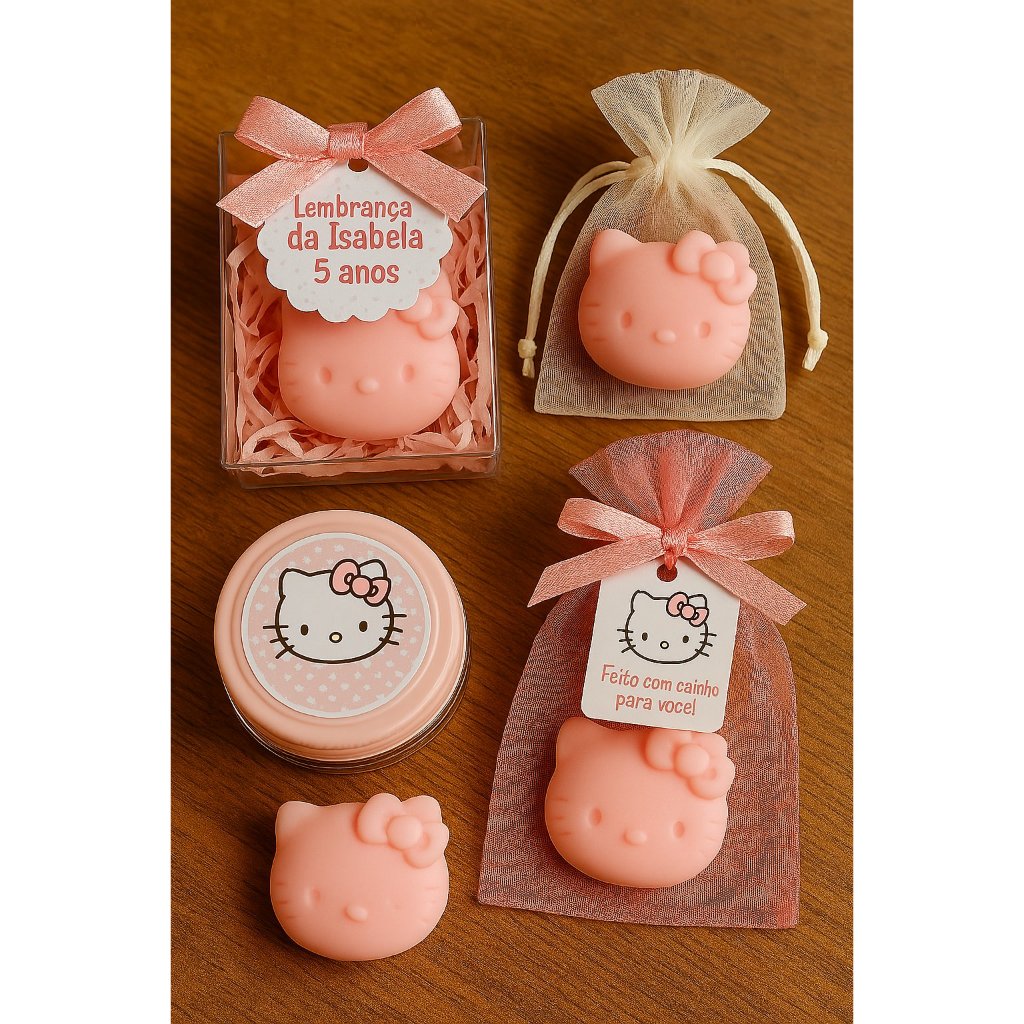25 Lembrancinhas Hello Kitty rosa sabonetes gato chá de bebê chá de fralda maternidade aniversário