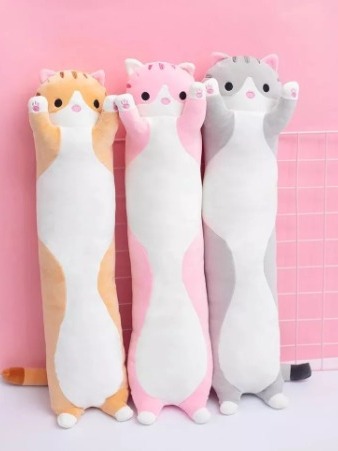 Almofada Travesseiro Gatinho Pelúcia Macio bebê 50cm Brinquedo de Pelúcia cheio e longo Salsicha