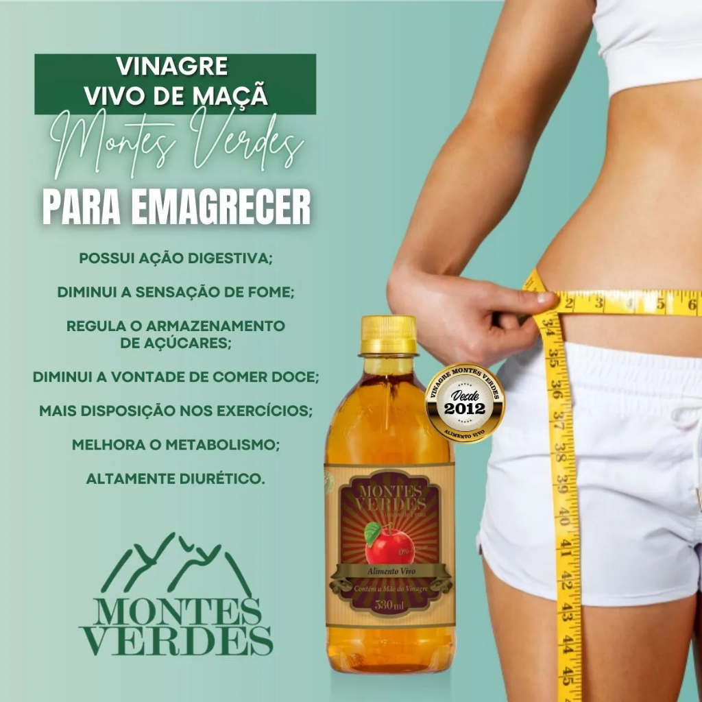 KIT 2X Vinagre de Maca 100% Orgânico 530ml Puro Vegano Montes Verdes 5% Acidez Ajuda Emagrecer Saúde