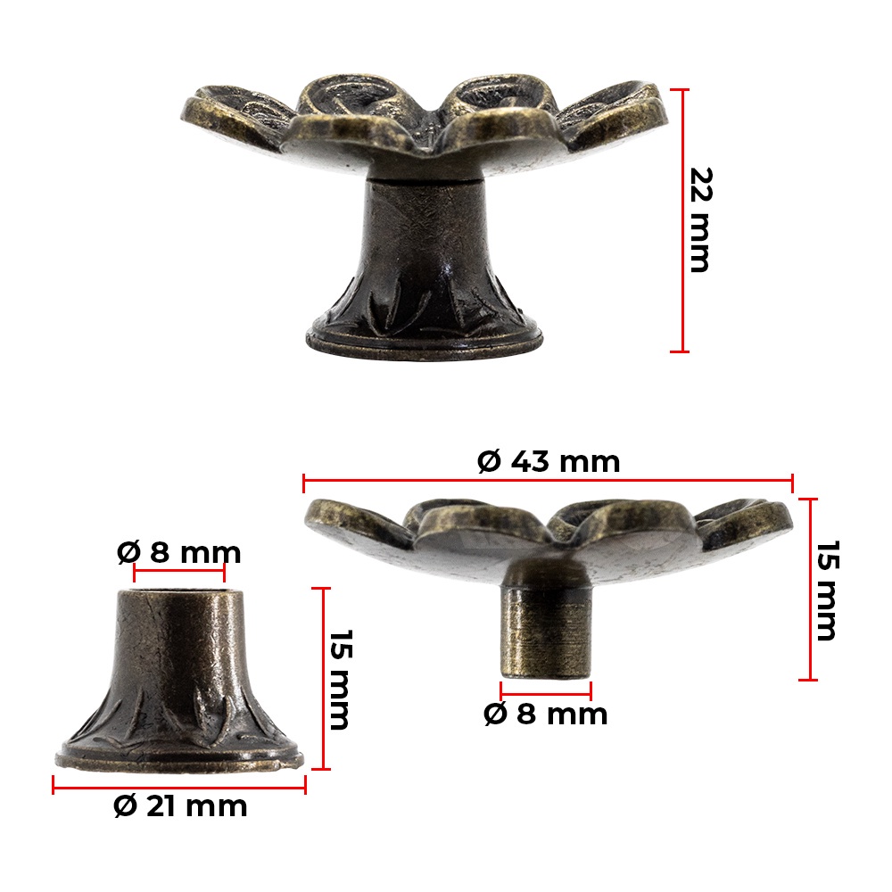Puxador Colonial Ouro Velho Modelo Flor Turim De Gaveta 6 Uni