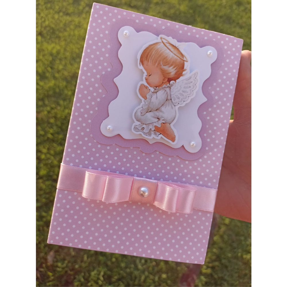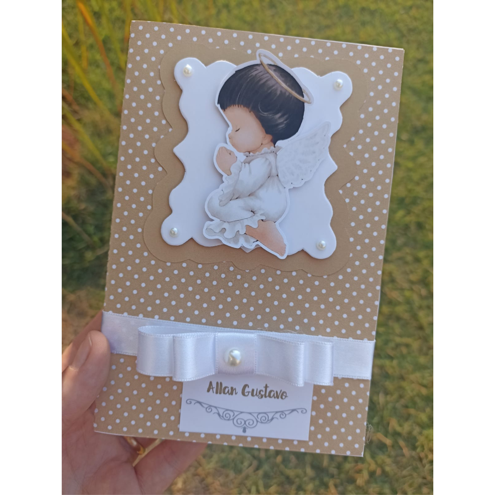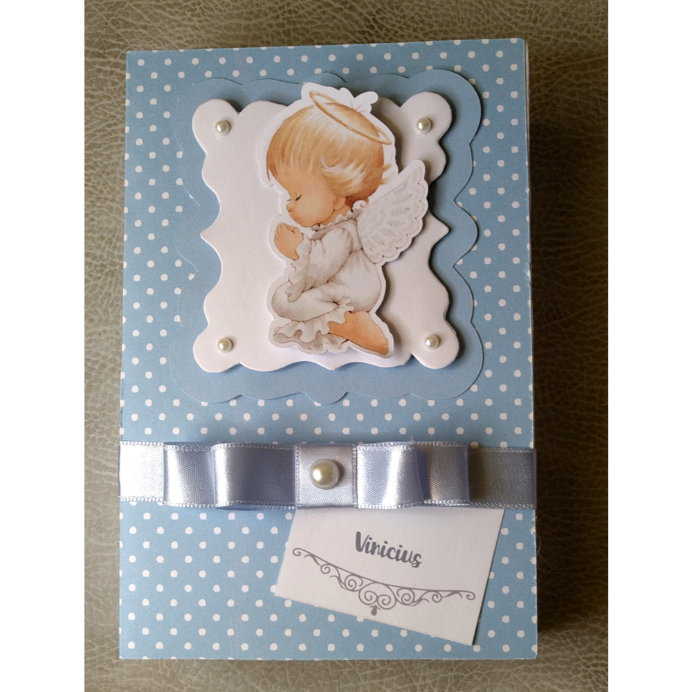 Caixa convite madrinha batismo - convite anjinho com mini terço e foto padrinho padrinhos batizado