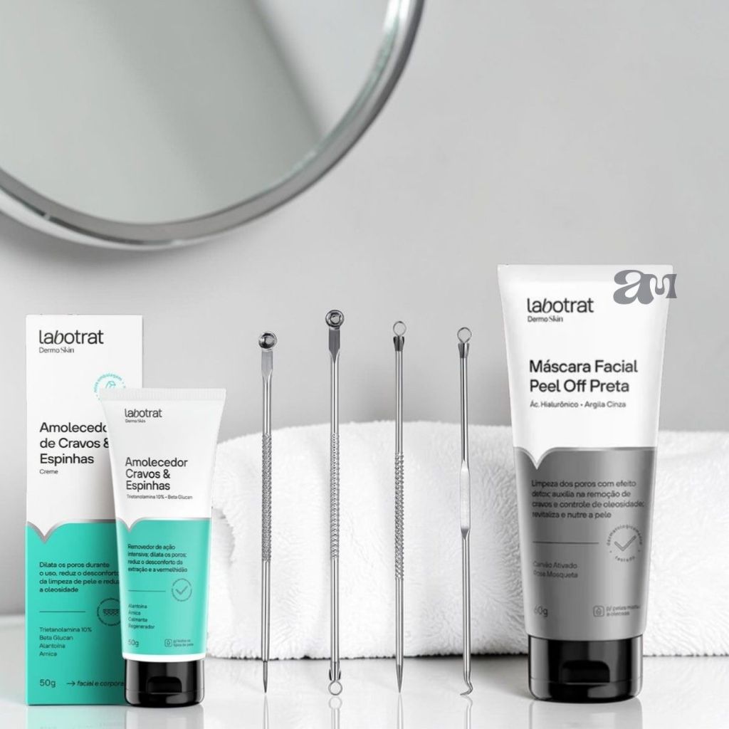 Kit Amolecedor Espinha, Extrator e Máscara Peel Off Anti Cravos Labotrat Limpeza de Pele Emoliente