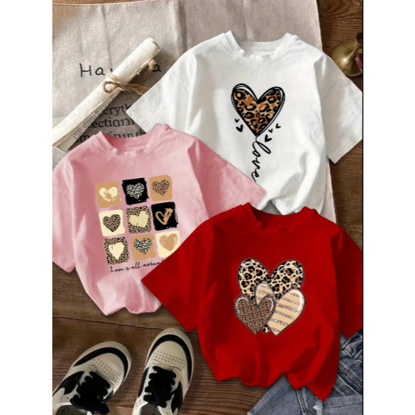 Kit 3 Camiseta Feminina Minimalista Camisa T-shirt 100% Algodão Estampa Coração