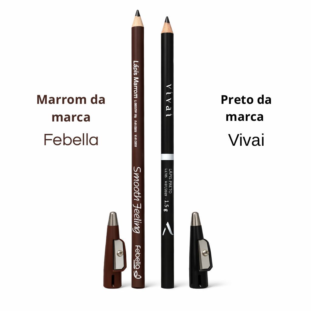 Kit 2 Lápis de Olho Com Apontador Preto e Marrom VIVAI