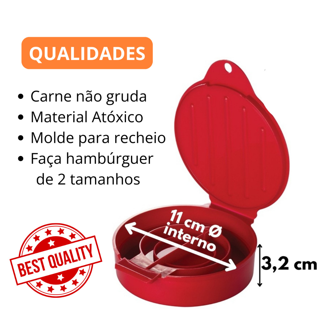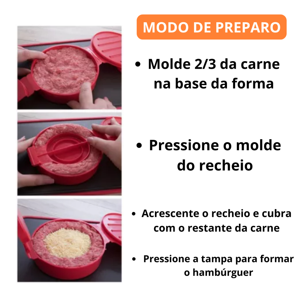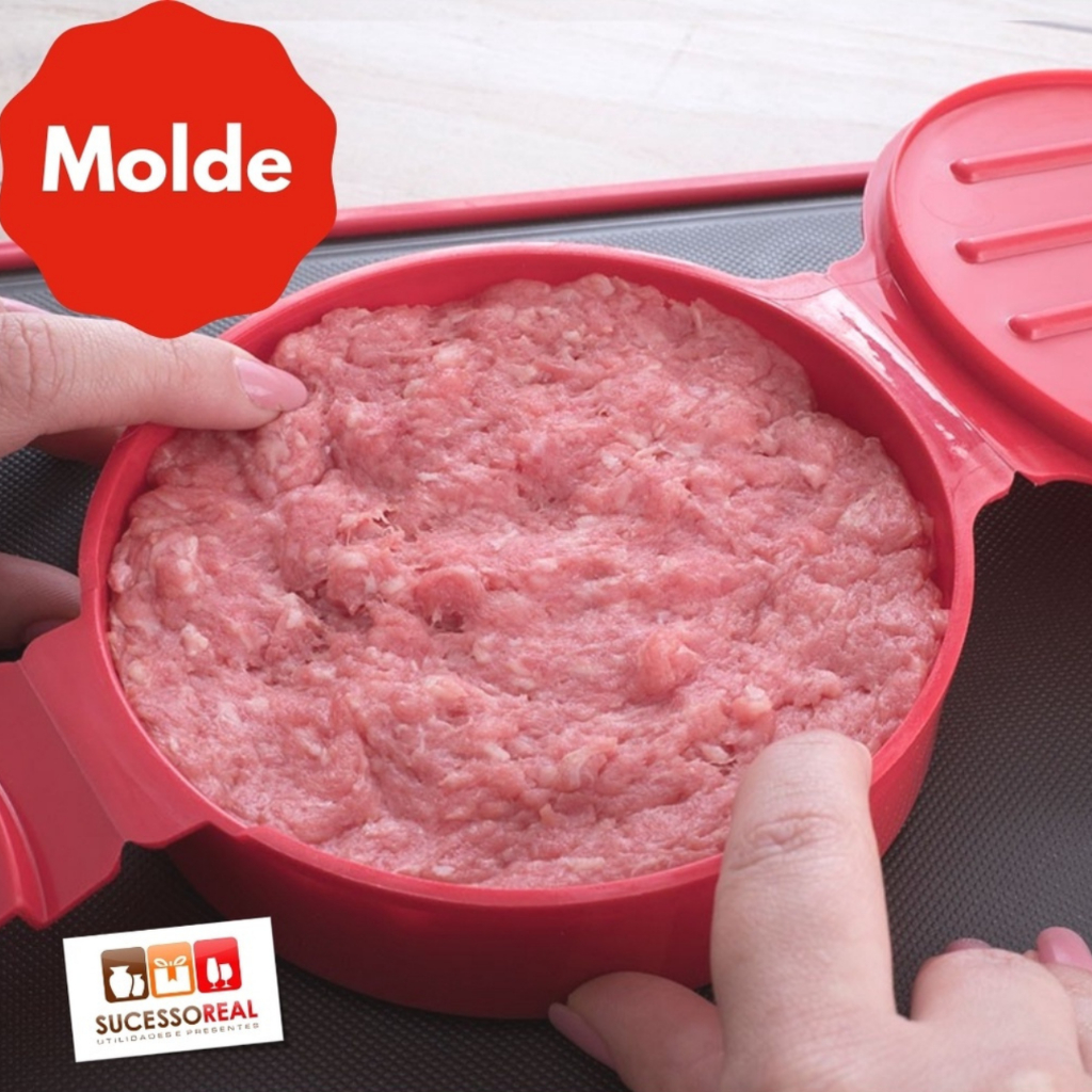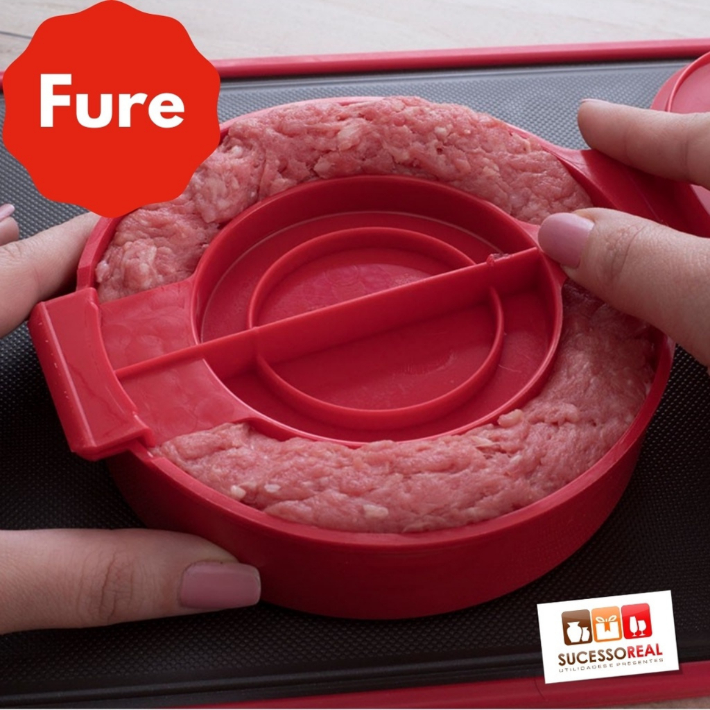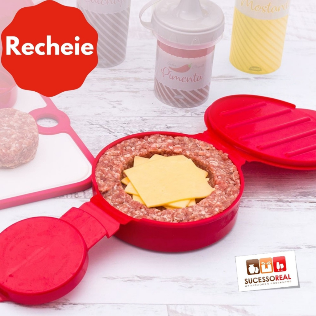 Forma Molde Para Fazer Hambúrguer Artesanal Recheado Caseiro 2 em 1 Rápido e Fácil Plasutil
