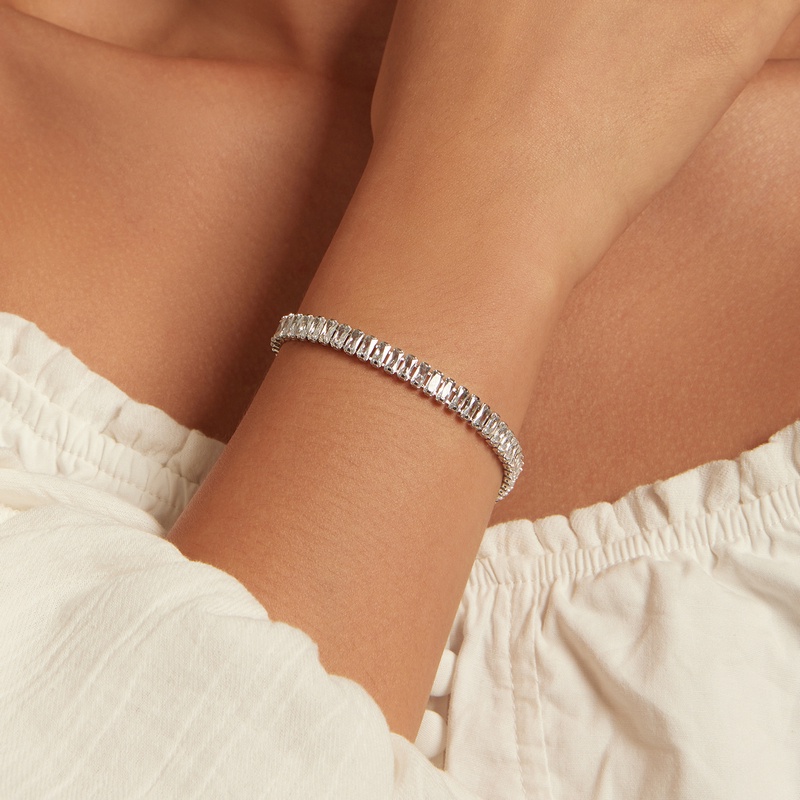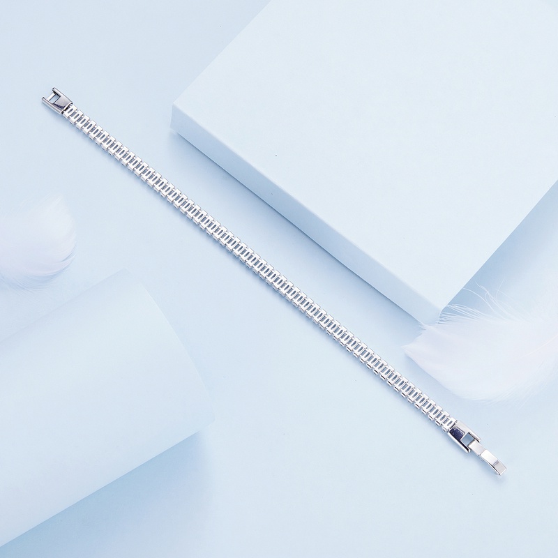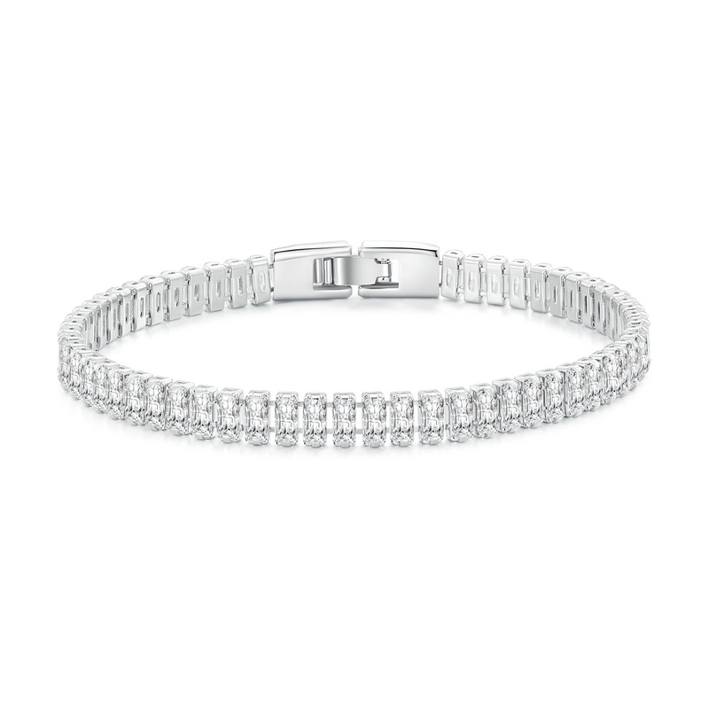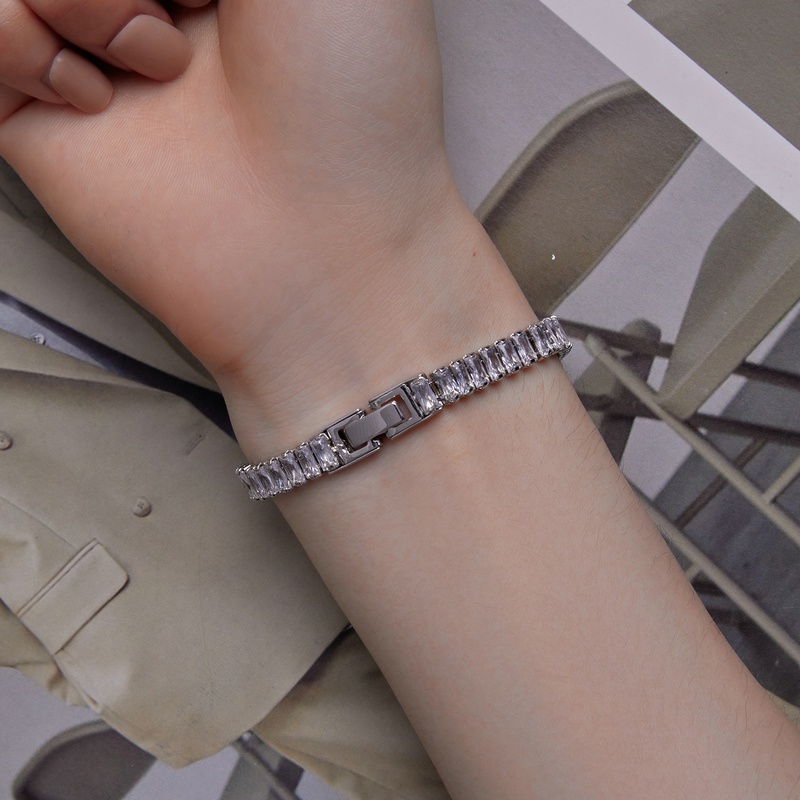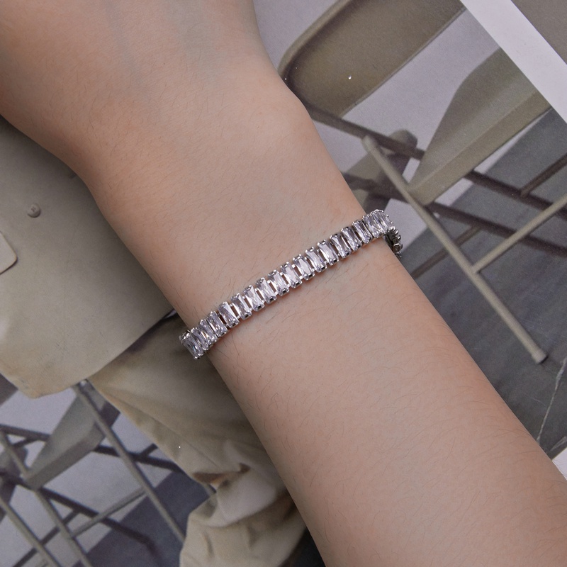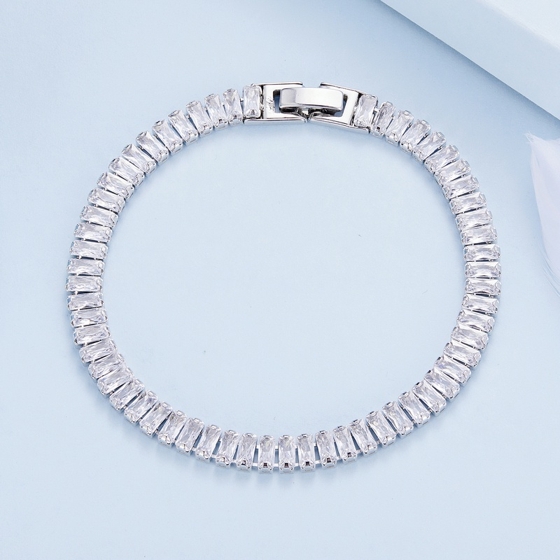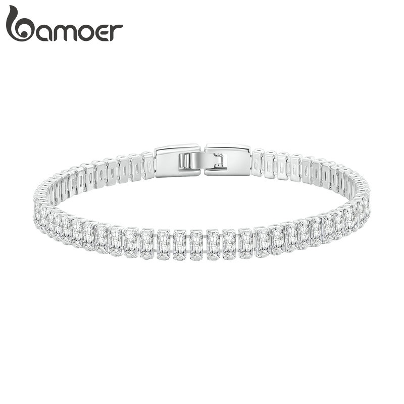 Pulseira De Zircônio Quadrado Brilhante Bamoer 17cm E 19cm Jóias Da Moda Adequado Para Mulheres Homens