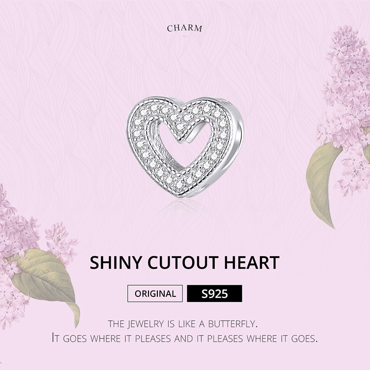 Bamoer Oco Design Esculpido Da Forma Do Coração Charme Prata Esterlina 925