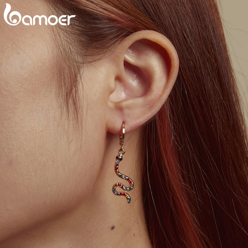 Bamoer AIE076 Brincos De Argola De Cobra Com Strass Hipoalergênico De Liga Retrô/Bijuteria Fashion Para Meninas E Mulheres