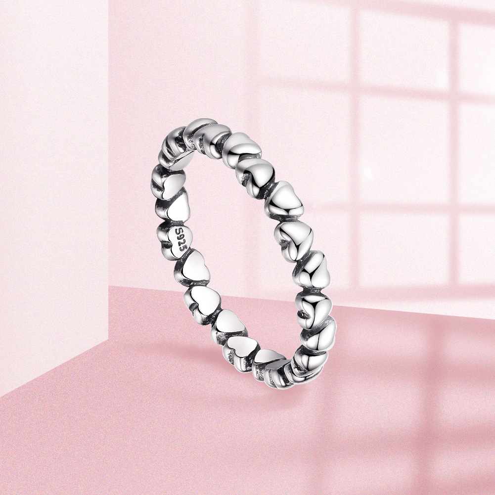 Bamoer Finger Ring Heart Style Authentic Anti-corrosion Silver 925 Orignal Jewelry For Women & Girls Fit Gifts BSR179