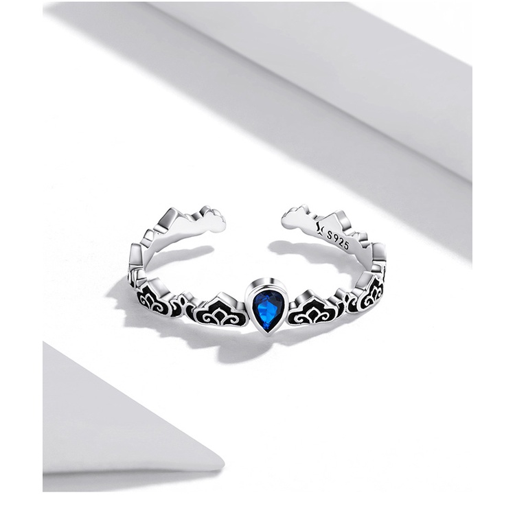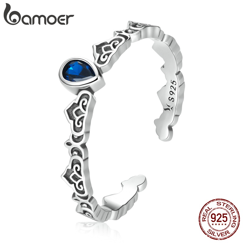 Anel Bamoer Prata 925 De Zircônia Azul SCR767