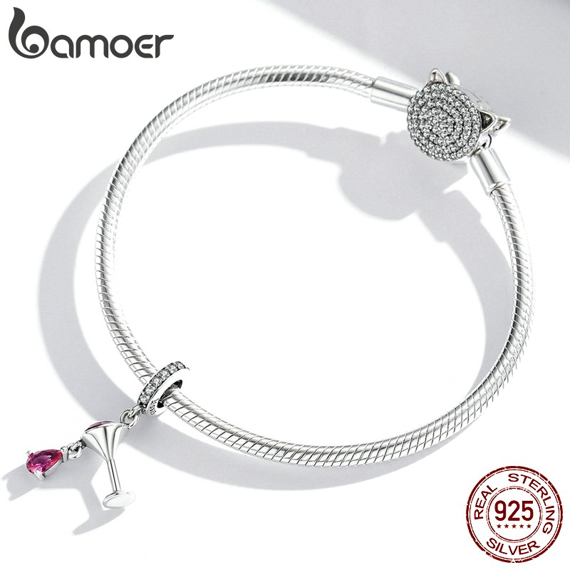 Bamoer Encantos 925 Vinho De Prata Forma De Vidro 4.5 Milímetros Abertura Pingente Acessórios De Moda Adequado Para Diy Pulseira E Colar Scc1997