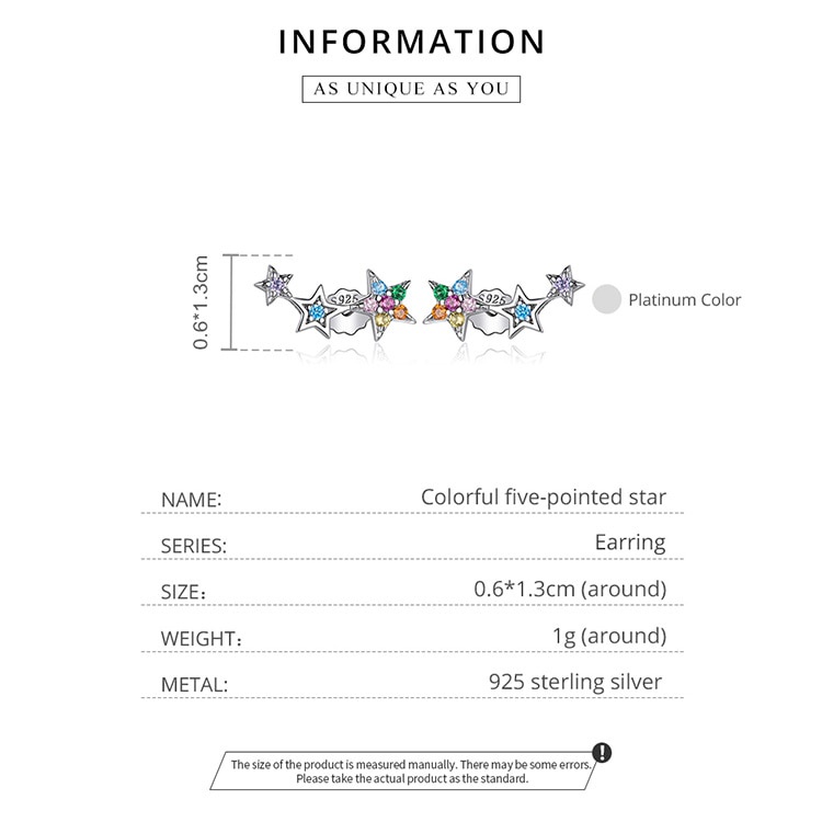 Bamoer Brincos Coloridos De Cristal Estrela 4 Estilo Prata Esterlina 925 Hipoalergênico Moda Jóias Para As Mulheres & Meninas Presentes Sce175