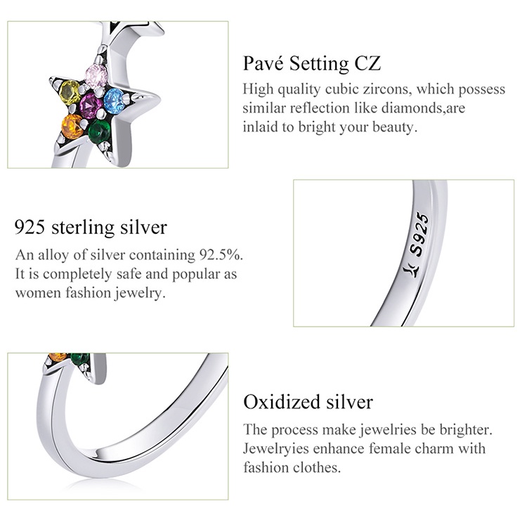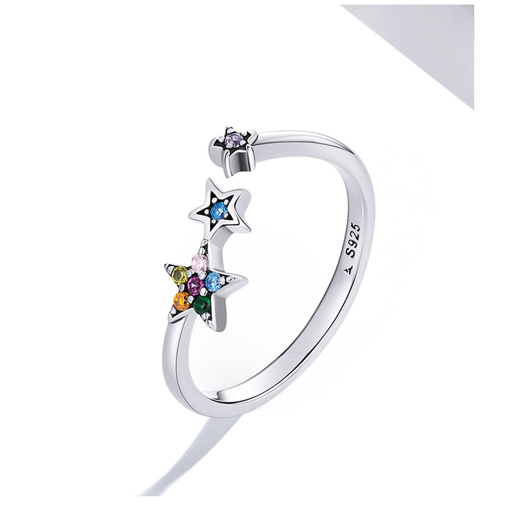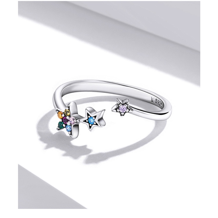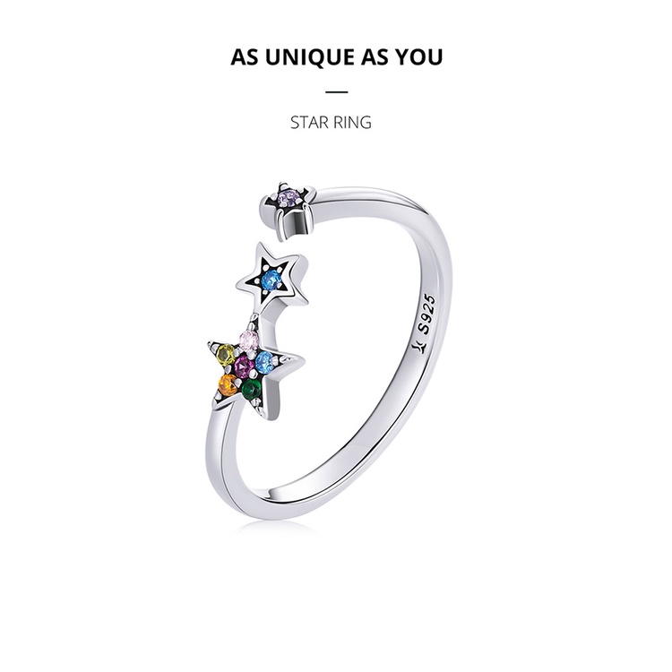 Anel Bamoer De Prata Esterlina 925 Com Formato De Estrela Brilhante SCR769