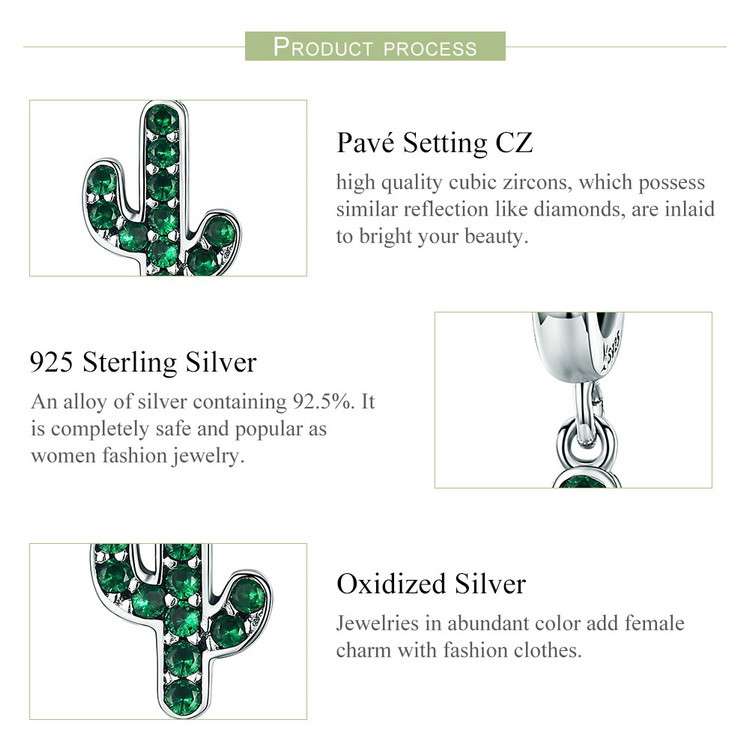 Bamoer ® 925 Cacto De Prata Brilhante CZ Pingente Pulseira De Charme Jóias De Encanto