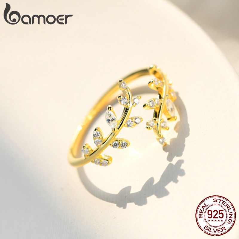 Bamoer Anel Aberto Feminino De Prata 925 Com Folhas Delicadas Para Mulheres/Meninas