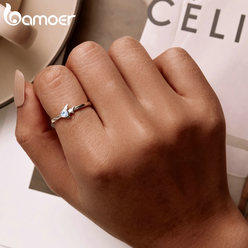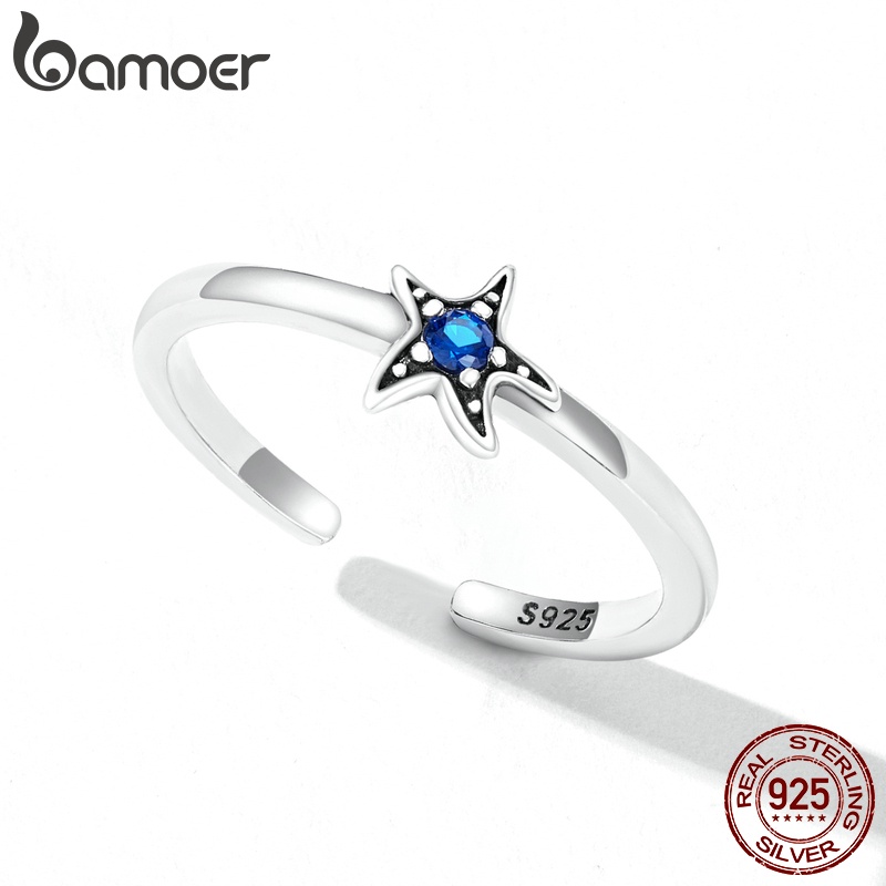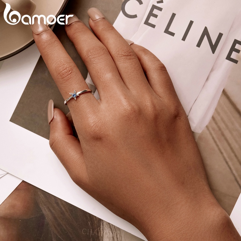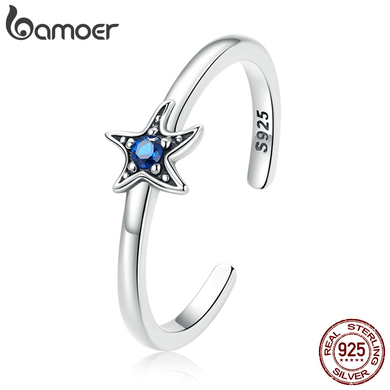 Bamoer 925 Anel Aberto De Prata Coleção Marinha Tamanho Ajustável Moda Jóias Para As Mulheres