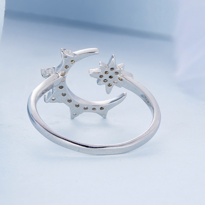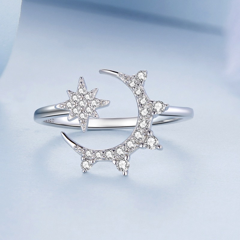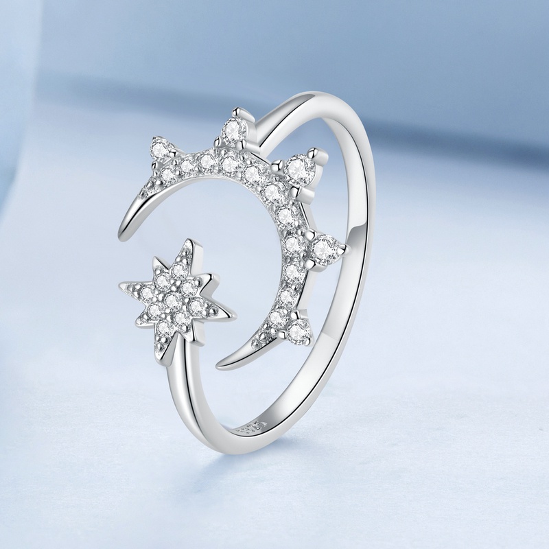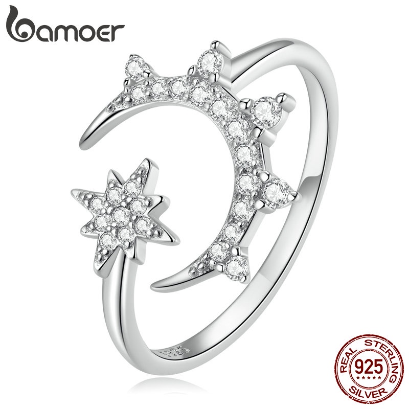 Bamoer 925 Estrela De Prata E Anel Aberto Da Lua Para Jóias Simples Moda Feminina