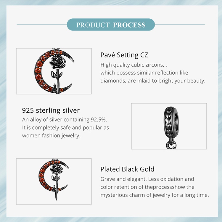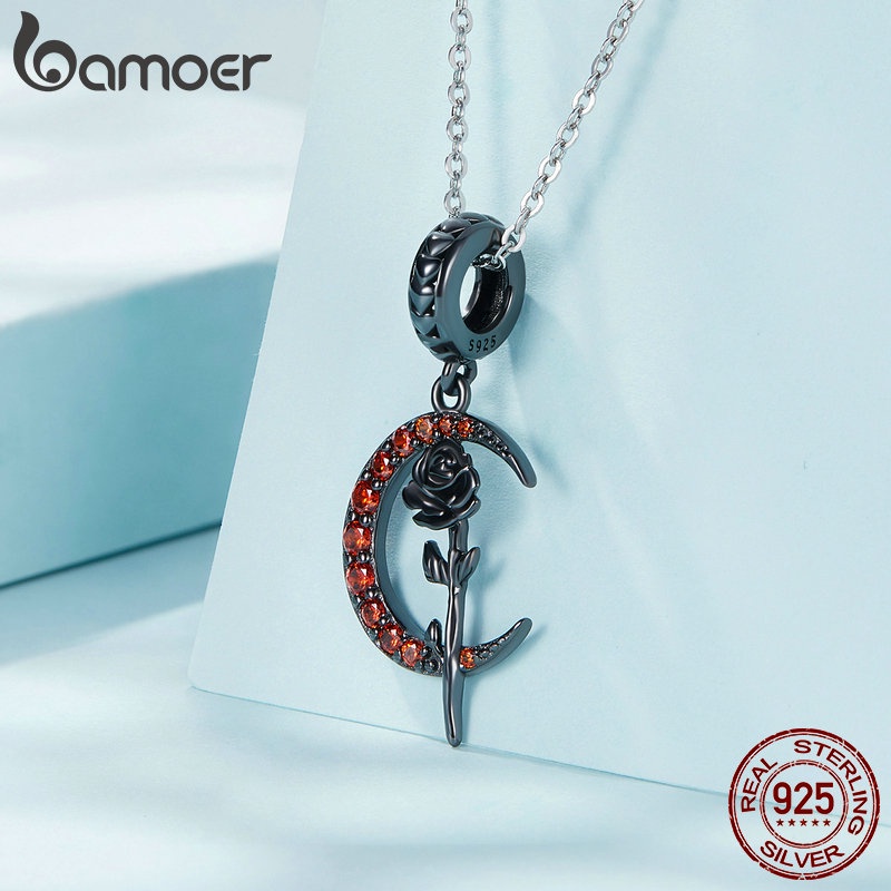 Contas Bamoer 925 Lua De Prata E Rosa Pendurado Colar Pandente Pulseira Acessórios Joias Para Halloween